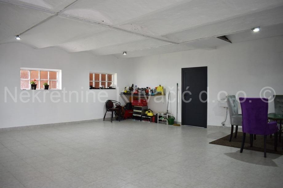 Ostatak su dvije prostrane garaže s vratima na daljinsko otvaranje i veliko spremište. Cijela nekretnina je potpuno uređena, grijana centralnim grijanjem na kruta goriva, septička jama i bunar, u kući je uveden plin. Termofasada, novi crijep i bakreni oluci.