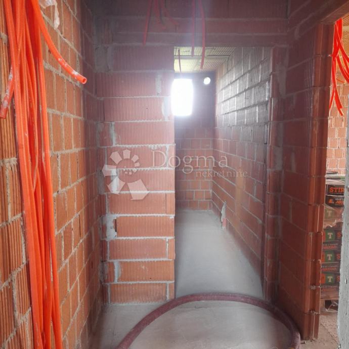 - grubi građevinski radovi (temelji, donja betonska ploča, hidroizolacija ispod zidova, zidanje nosivih i pregradnih zidova, izrada fert stropa, izrada armirano betonskih serklaža, izrada kompletnog krovišta, loggia, uređenje prilaza i parkinga sa betonskim rubnjacima)