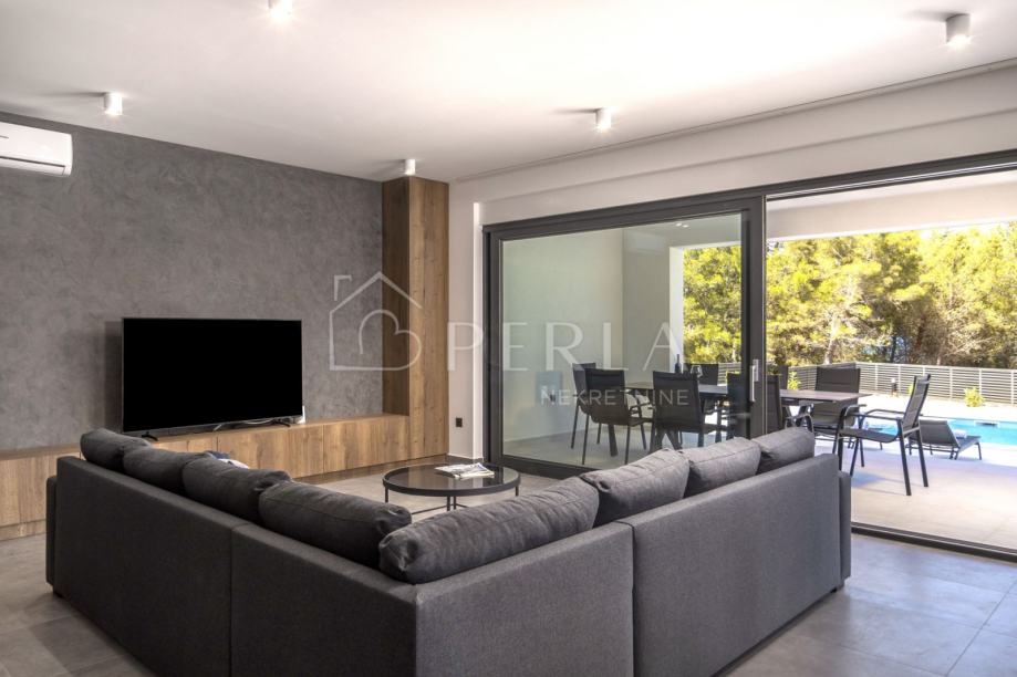 Prekrasna villa smještena je na mirnoj lokaciji na samo 50 m od mora i u neposrednoj blizini borove šume, pružajući Vam potpunu privatnost i čisti doživljaj mediteranskog načina života.