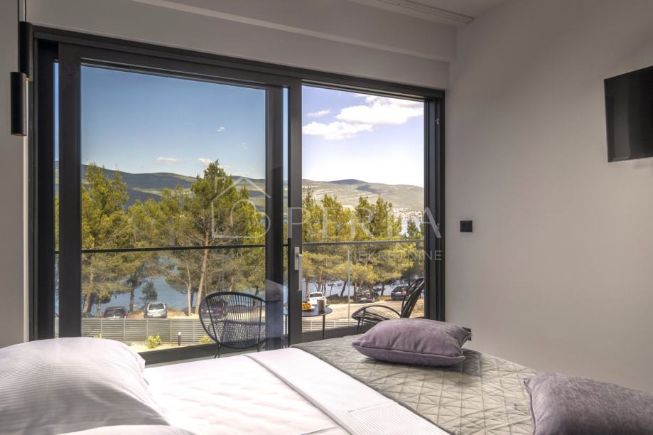 Prizemlje se sastoji od ulaznog prostora, tehničke sobe, kupaonice, kuhinje i blagovaonice sa prostranim dnevnim boravkom koji su sa staklenim stijenama spojeni sa natkrivenom terasom s koje se pruža predivan pogled na more.