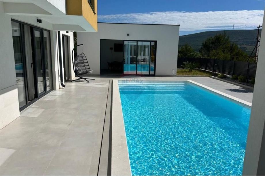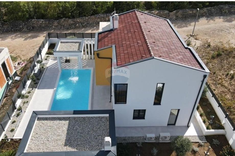 Ukupna stambena površina iznosi 180 m², smještena na zemljištu od 500 m², s kojeg se pruža prekrasan pogled na Jadransko more. Riječ je o nekretnini izgrađenoj s posebnom pažnjom na kvalitetu i detalje, savršena za obiteljski život ili kao investicija za turistički najam.