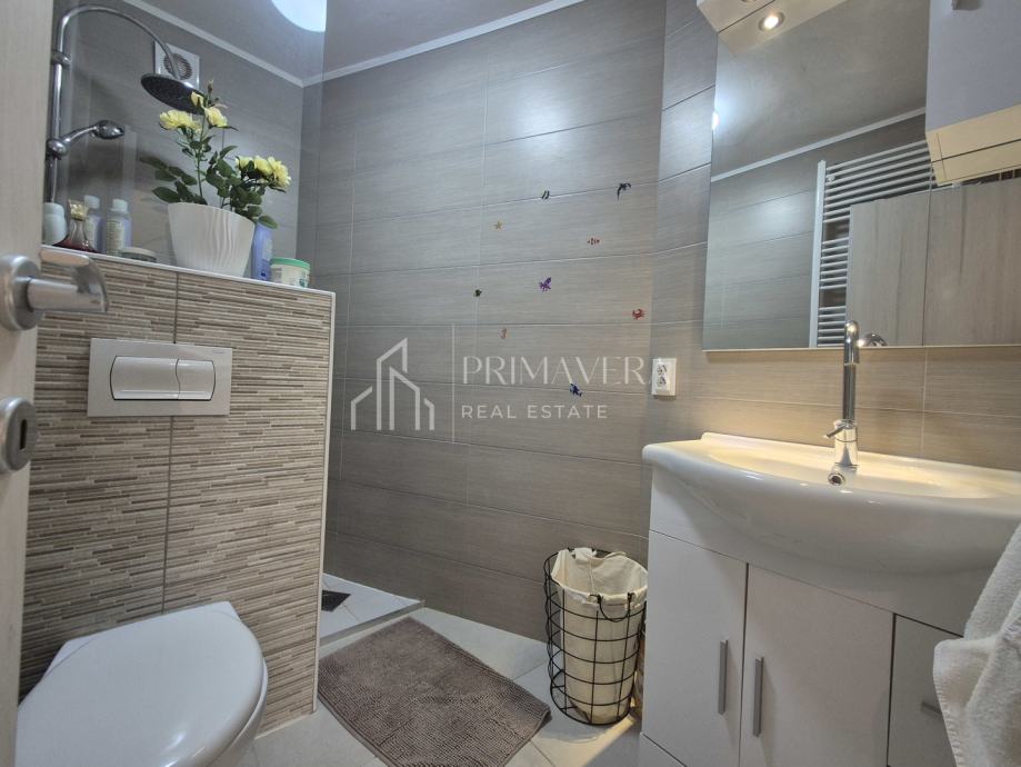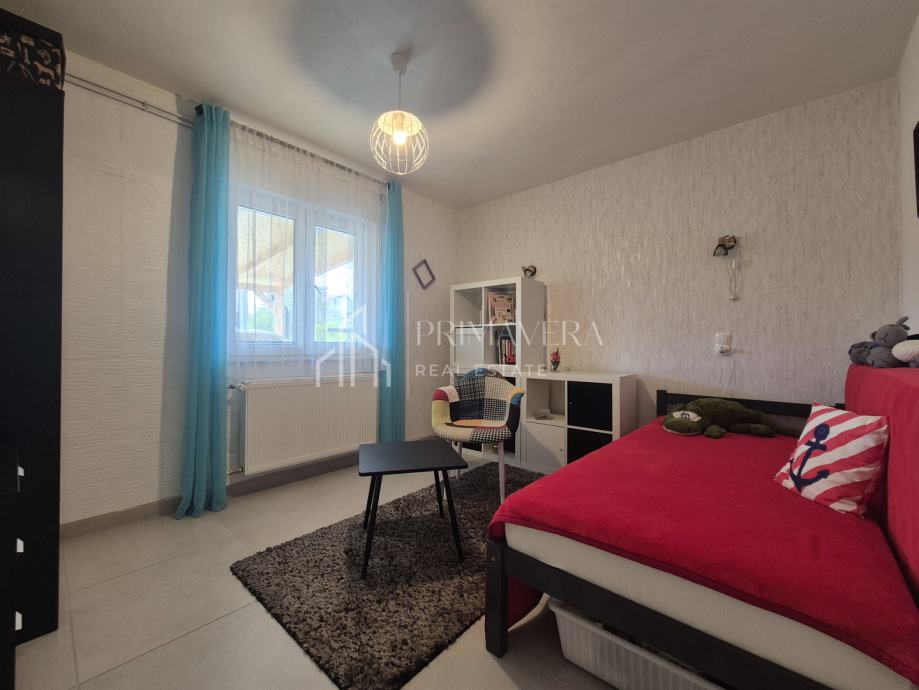 Kuća je klimatizirana sa 4 klima uređaja. Ugrađen je sustav centralnog grijanja na pelete, putem radijatora koji su postavljeni u svim prostorijama. Stolarija je PVC s komarnicima i griljama. Fasada je obložena stiropor izolacijom. Kuća je potpuno namještena, a namještaj je uključen u cijenu.