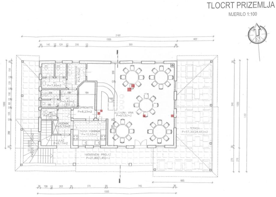 - važeća građevinska dozvola za ugostiteljski objekt sa prenoćištem, tlocrtne površine 276,48 m2 x podrum, prizemlje i potkrovlje (tlocrti u fotografijama).