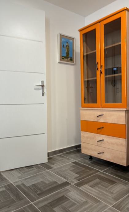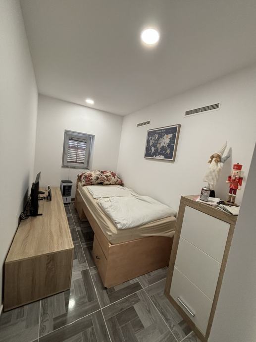 Proteže se na dvije zasebne etaže prizemlje 55m2 i kat 68m2 koncipiran kao 2S+DB .
