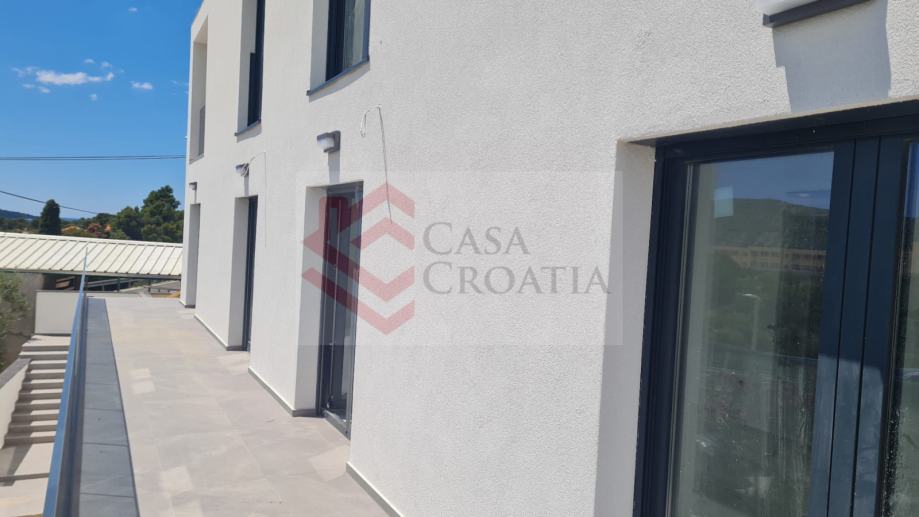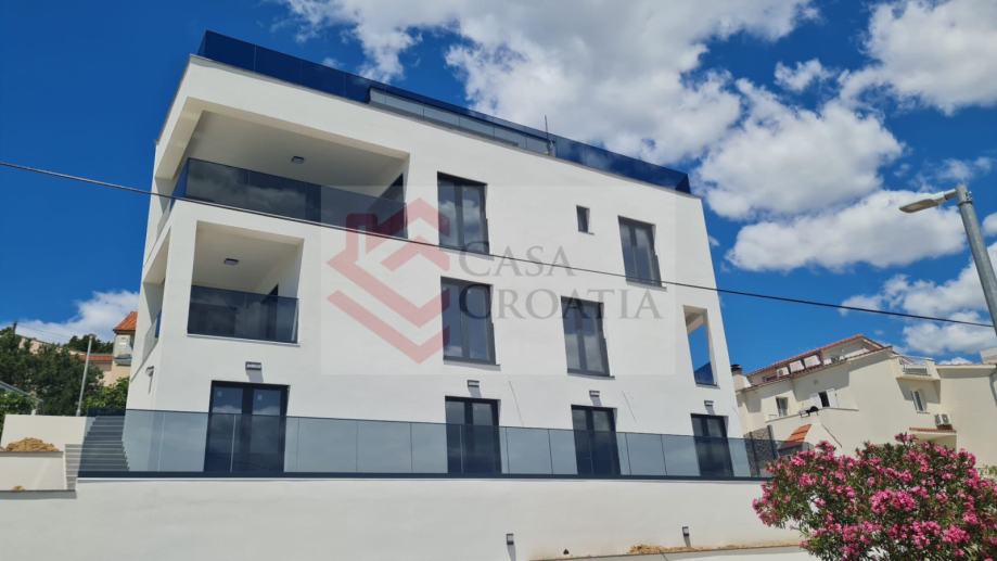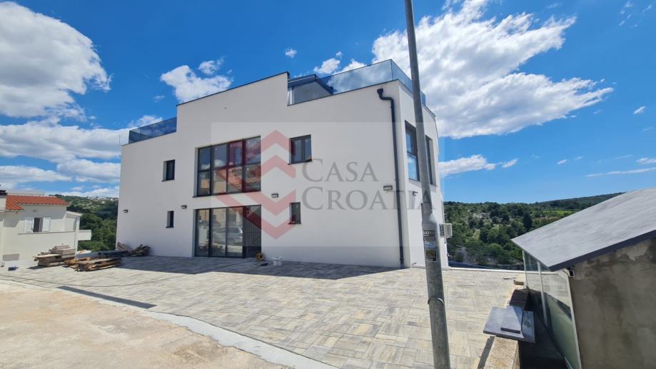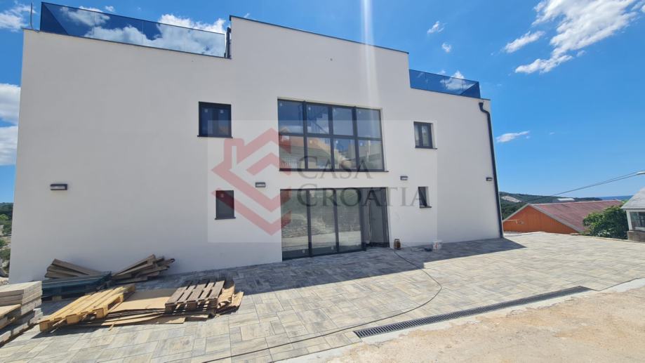 Prodaje se četverosoban apartman S1 neto korisne površine 85,39 m2 u zgradi s 4 apartmana u izgradnji u Splitskoj ulici u Primoštenu, odmah iznad magistrale.Apartman se nalazi u suterenu i njegov zatvoreni dio površine 82,26 m2 sastoji se od ulaznog hodnika, dvije spavaće sobe, dvije kupaonice s WC-om, dnevnog boravka s kuhinjom i blagovaonicom i radne sobe.Ostatak kvadrature otpada na vanjsko parkirno mjesto od 12,50 m2 (obračunski 3,13 m2).Investitor je fizička osoba tako da je kupac obavezan platiti porez na promet nekretnina u iznosu 3%.