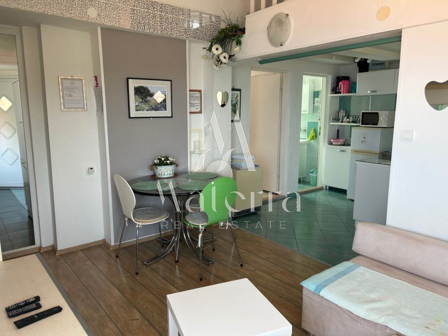 Stan se prostire na 108,35 m² i trenutno je podijeljen na dva apartmana, što omogućava jednostavno spajanje u jedinstveni četverosobni stan. Uz tri spavaće sobe, dvije kuhinje i tri kupaonice, stan je idealan za obitelj ili kao investicija u turističkom najmu. Stan je potupno namješten.