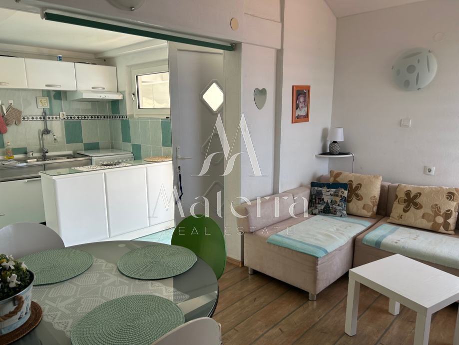 Ovaj stan smješten je u srcu jedne od najljepših uvala na Jadranu, neposredno uz obalu, s predivnim pogledom na more. Savršen je za ljubitelje mira i prirode.