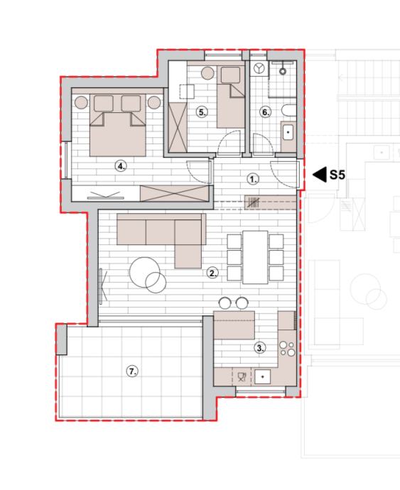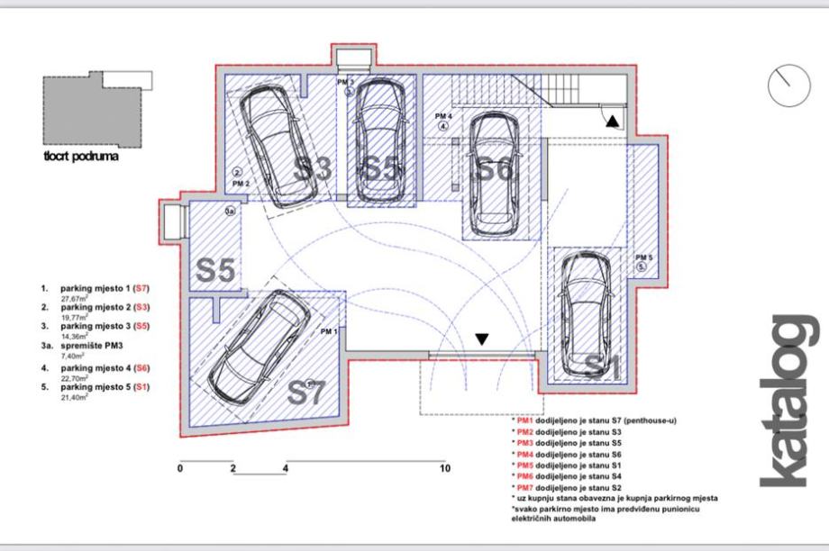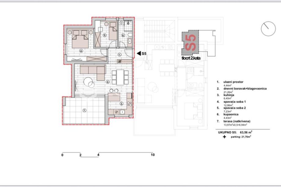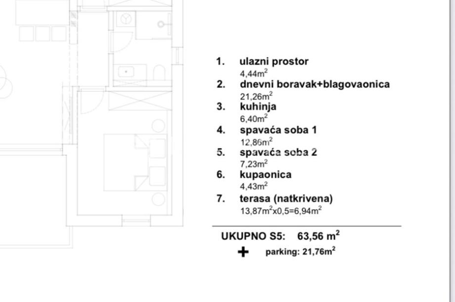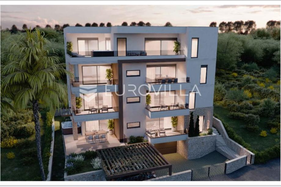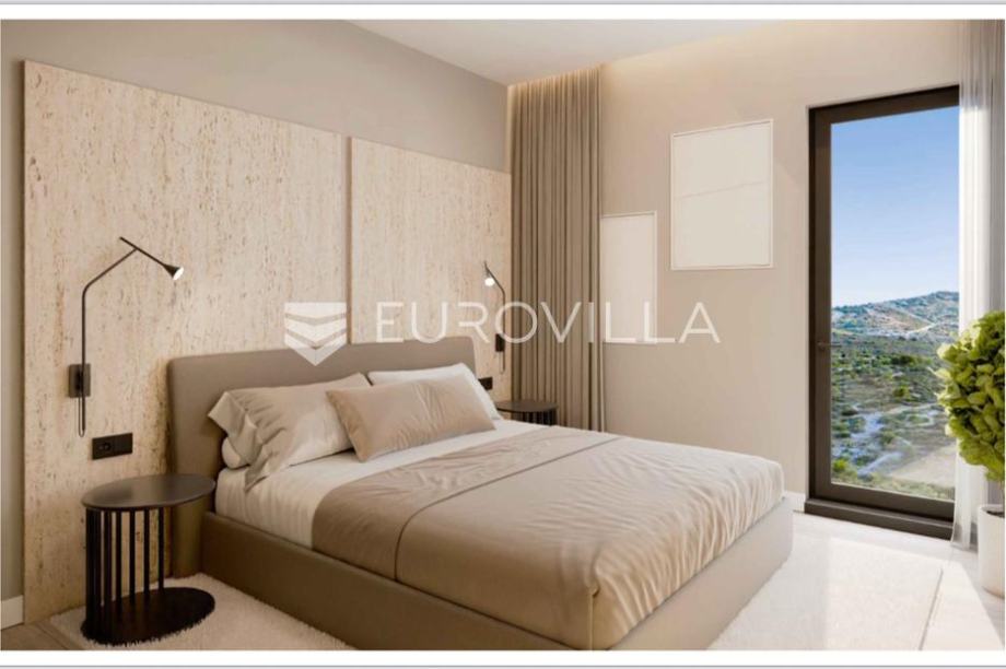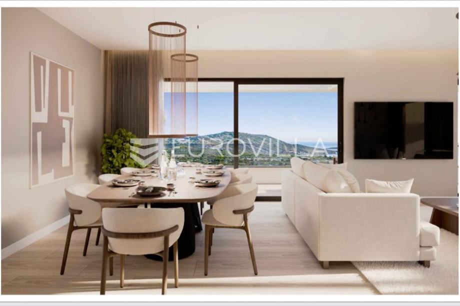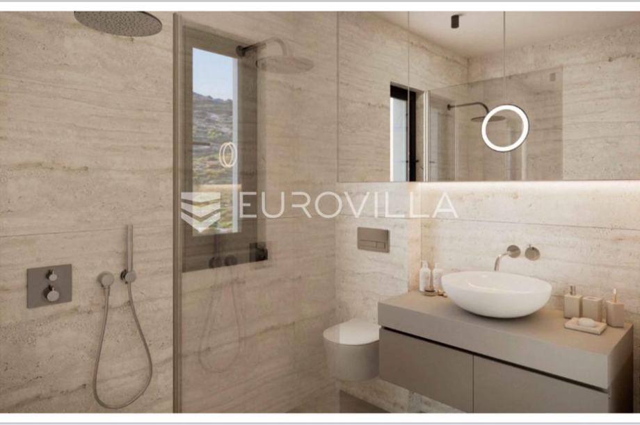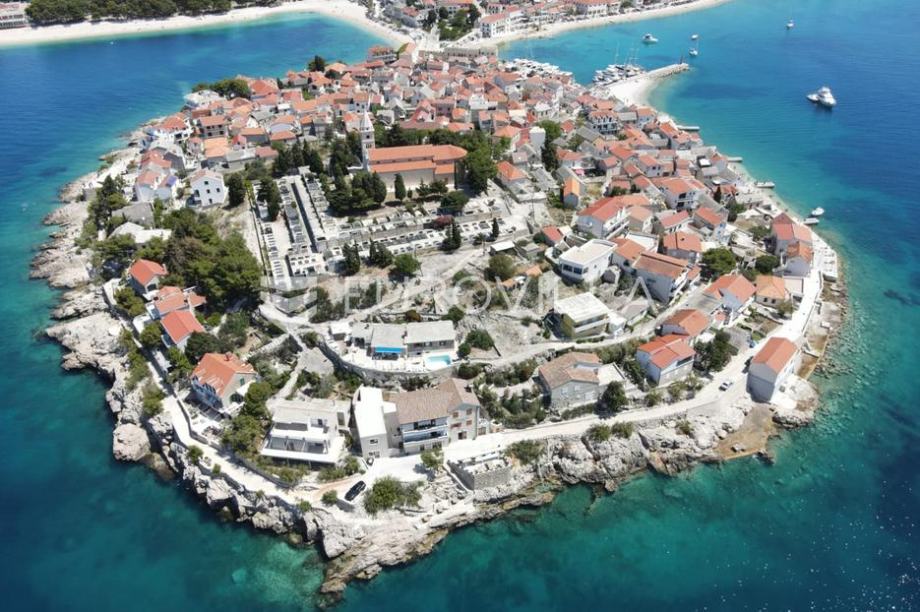 U Primoštenu na povišenoj poziciji, gradi se stambeni objekt južne orijentacije na pješačkoj udaljenosti od plaže od 1400 m. Objekt se sastoji od ukupno 7 luksuznih stambenih jedinica. Zahvaljujući izoliranoj i povišenoj poziciji, lokacija objekta pruža izuzetan mir i predivan pogled.Stan S5 na drugom katu jugozapadne orijentacije, ukupne neto korisne površine 74,44 m2 sastoji se od ulaznog prostora, prostranog dnevnog prostora (dnevni boravak, kuhinja i blagovaonica), dvije spavaće sobe površine 7 m2 odnosno 13 m2, kupaonice i terase površine 14 m2. Površina zatvorenog prostora stana iznosi 56,6 m2.Stanu još dodatno pripada parking mjesto površine 21,7 m2.U izgradnji objekta se koriste vrhunski materijali i primjenjuju visoki standardi gradnje. Objekt se gradi armiranobetonskom konstrukcijom, s fasadom od kamene vune debljine 10 cm. Vanjska aluminijska stolarija opremljena je troslojnim staklom, električnim roletama i komarnicima na sobnim prozorima.Stanovi imaju protuprovalna vrata, klima uređaj u svakoj prostoriji, podno grijanje, dok su podne obloge keramika i parket vrhunske kvalitete, dostupne u više varijanti prema izboru kupca.Parkirna mjesta osigurana su u garaži i na otvorenom i svako parking mjesto će imati punionicu za struju.Objekt je trenutačno u izgradnji, u tijeku su konstrukcijski radovi. Predviđeni završetak konstrukcijskih radova je početkom 2026 godine a očekivano useljenje je krajem 2026 godine pa se kupcu pruža mogućnost da po individualnim dizajnerskim rješenjima i u dogovoru s investitorom osmisli detalje u završnom uređenju unutrašnjosti pojedinog stana.Način plaćanja: 30 % prilikom potpisa predugovora / 30 % nakon završetka konstrukcijskih radova / 30% nakon završetka objekta / 10 % nakon ishođenja uporabne dozvole.Malo o mjestu: Primošten je predivan mali gradić smješten na obali jadranskog mora između Šibenika I Trogira s razlogom proglašen najboljom turističkom destinacijom 2024 godine. Prvi spomen mjesta Primošten potječe od 1564 godine. Poznat po svojoj izuzetnoj ljepoti i šarmu, posjetitelje širom svijeta privlači slikovitim krajolikom i bogatom poviješću.Jedno od najpoznatijih obilježja Primoštena je njegova starogradska jezgra uz koju se proteže poluotok.Geografski položaj Primoštena i prirodne osobine njegovog obalnog pojasa nose značajne vrijednosti. Uvale Velika i Mala Raduča, a naročito uvala Primošten (luka) ističu se izvanrednim prirodnim ljepotama.Dodatne informacije - udaljenosti od važnijih lokacija:Plaža: 1400 m / Primošten centar: 1500 m / Trogir: 30 km / zračna luka: 35 kmKupovina: 400 m / restoran: 1500 m / ljekarna: 400 m / banka: 1500 m / škola: 500 mZa sva dodatna pitanja stojim na raspolaganju....