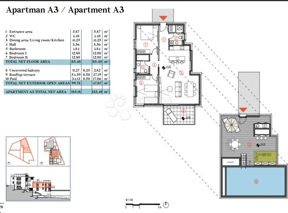 Vanjski prostor: 99,78 m² (obračunski 47,07 m²)
