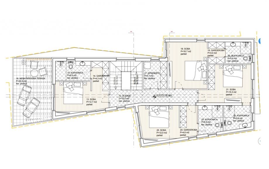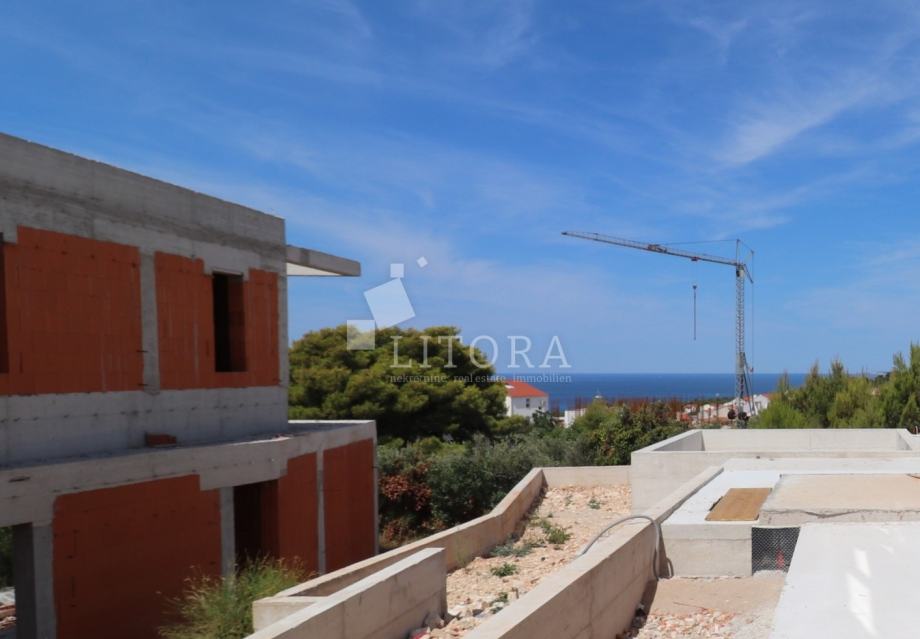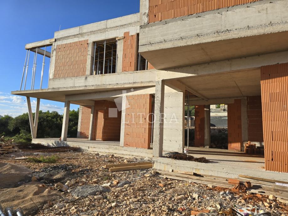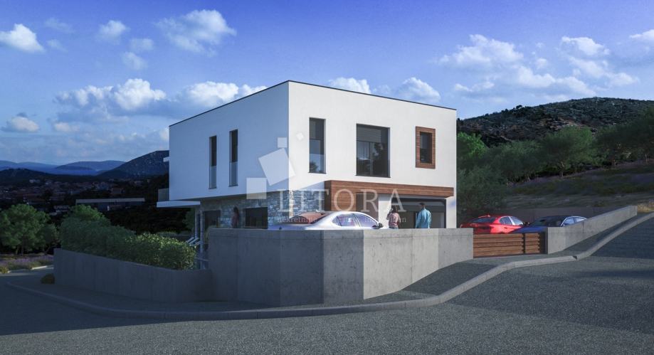 Ekskluzivna samostojeća vila moderne arhitekture i funkcionalnog rasporeda, ukupne korisne površine 257,45 m², smještena je na zemljištu površine 571 m². Nekretnina je pažljivo projektirana kako bi pružila maksimalnu udobnost, privatnost i visoku razinu kvalitete stanovanja. Posebnu vrijednost daje otvoren pogled na more i mjesto Primošten. Prizemlje se sastoji od ulaznog prostora, wellness zone, garaže sa strojarnicom, moderne kuhinje s blagovaonicom te prostranog dnevnog boravka s izlazom na natkrivenu terasu i ljetnu kuhinju, idealnu za boravak na otvorenom. S terase je osiguran i zaseban ulaz u vanjski WC. Unutarnjim stepenicama dolazi se na kat, gdje se nalaze četiri komforne spavaće sobe, svaka s vlastitom kupaonicom i garderobom, čime je osigurana potpuna privatnost. Jedna spavaća soba ima izlaz na prostranu terasu površine 22,60 m², s koje se također pruža prekrasan pogled na more i Primošten. Vila će biti opremljena vrhunskim materijalima i suvremenim sustavima: podnim grijanjem putem dizalice topline u cijelom objektu, klimatizacijom, solarnim panelima za grijanje vode, električnim podizačima roleta te punionicom za električne automobile u garaži. Nekretnina se nalazi na atraktivnoj i mirnoj lokaciji, svega 800 m od uređene plaže i 1.100 m od centra mjesta, što je čini idealnom za luksuzan obiteljski život ili kao investiciju za turistički najam.