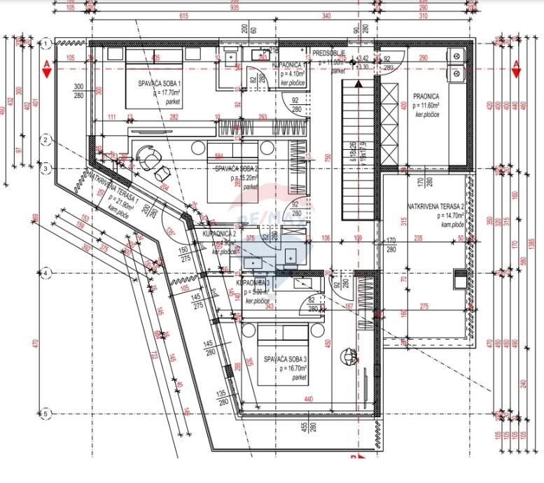 Vila ukupne površine 352.25 m2 se sastoji od suterena, u kojem se smjestila garaža i spremište, prizemlja i prvog kata.