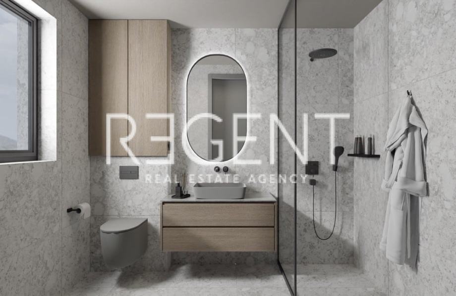Na prvom katu nalazi se prostrano predsoblje koje vodi do tri luksuzno uređene spavaće sobe, svaka sa svojom kupaonicom, pružajući maksimalnu privatnost i udobnost. Dvije terase, jedna natkrivena i jedna nenatkrivena, omogućuju uživanje u predivnom pogledu na more i okolinu.