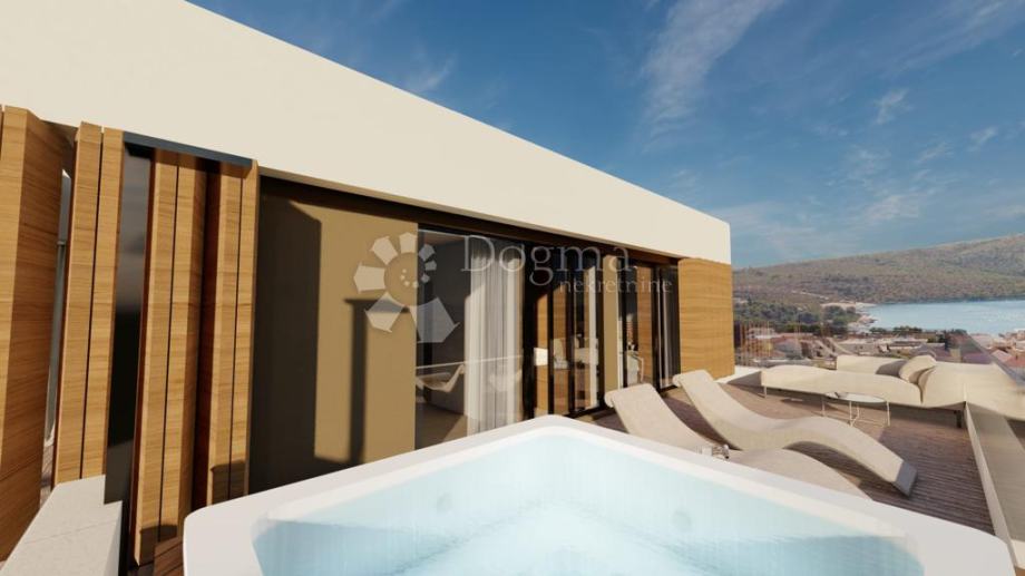 Zgrada modernog dizajna sa odličnim pogledom na prelijepi Primošten. Zgrada ima ukupno 7 super luksuznih stanova s predivnim pogledom, na mirnoj lokaciji blizu mora i plaže.