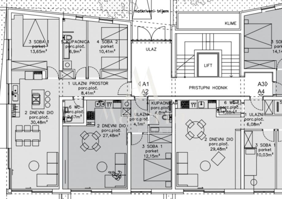 Stan A1 nalazi se u prizemlju moderne stambene zgrade i ističe se funkcionalnim rasporedom te prostranim vanjskim prostorima. Neto korisna površina 95,67 m².