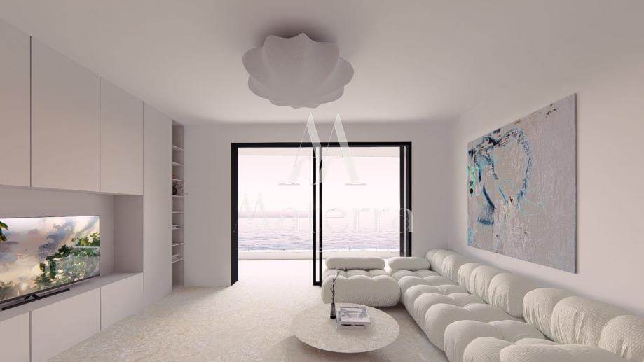 S terasa se pruža otvoren pogled na more, što stanu daje dodatnu vrijednost te ga čini idealnim za cjelogodišnje uživanje u mediteranskom ambijentu.