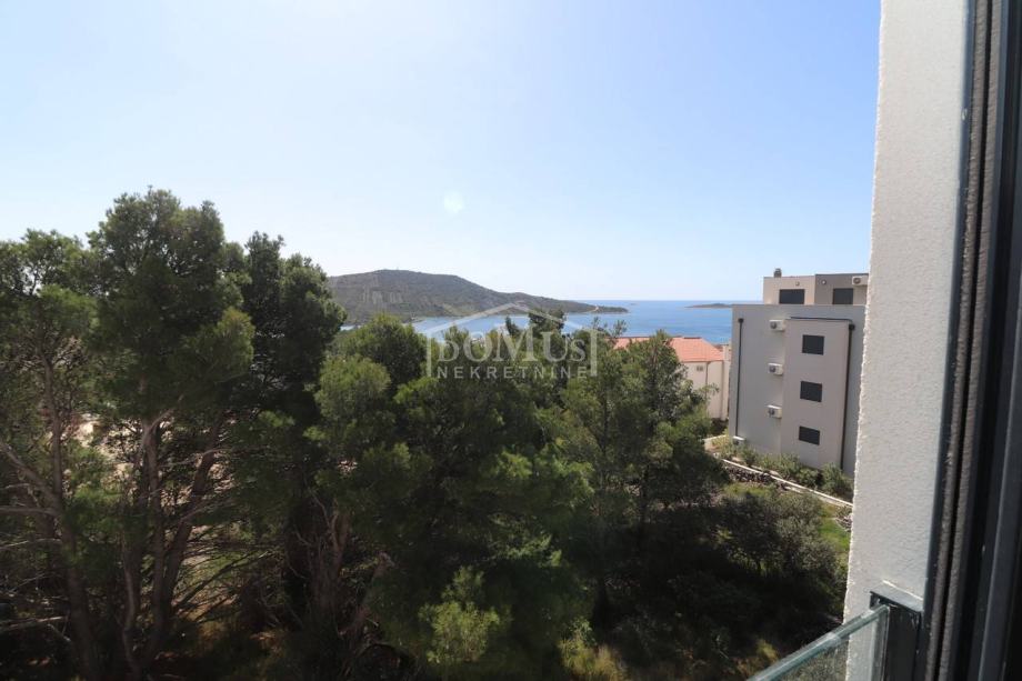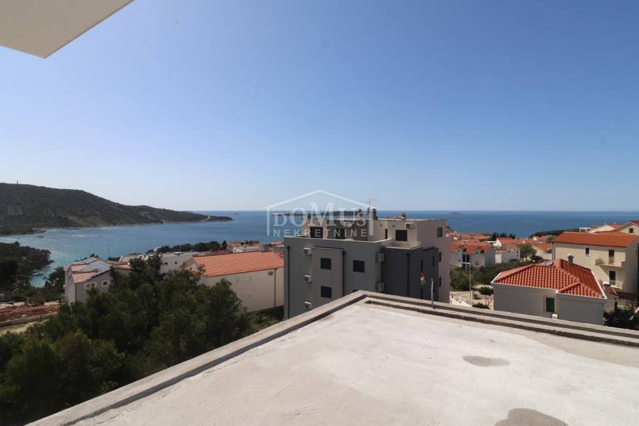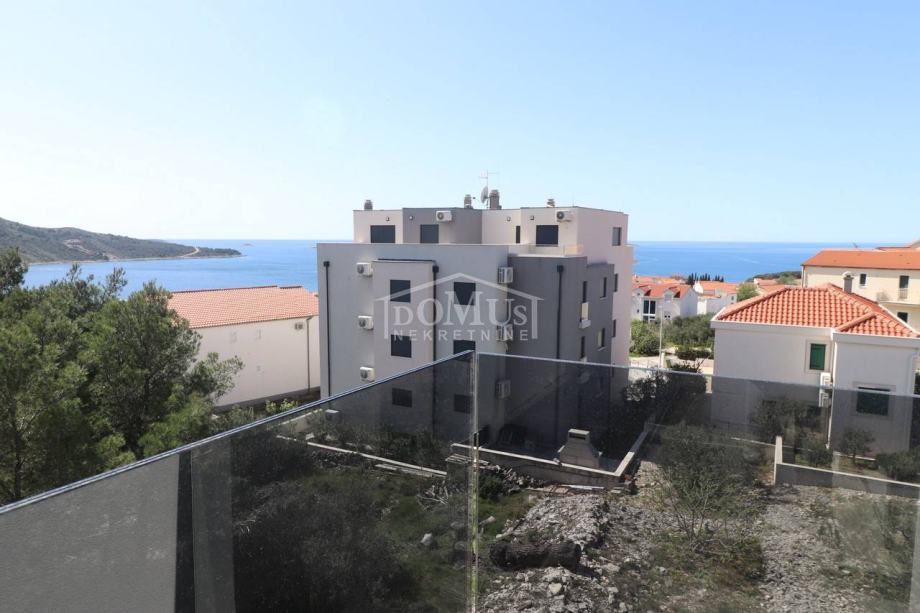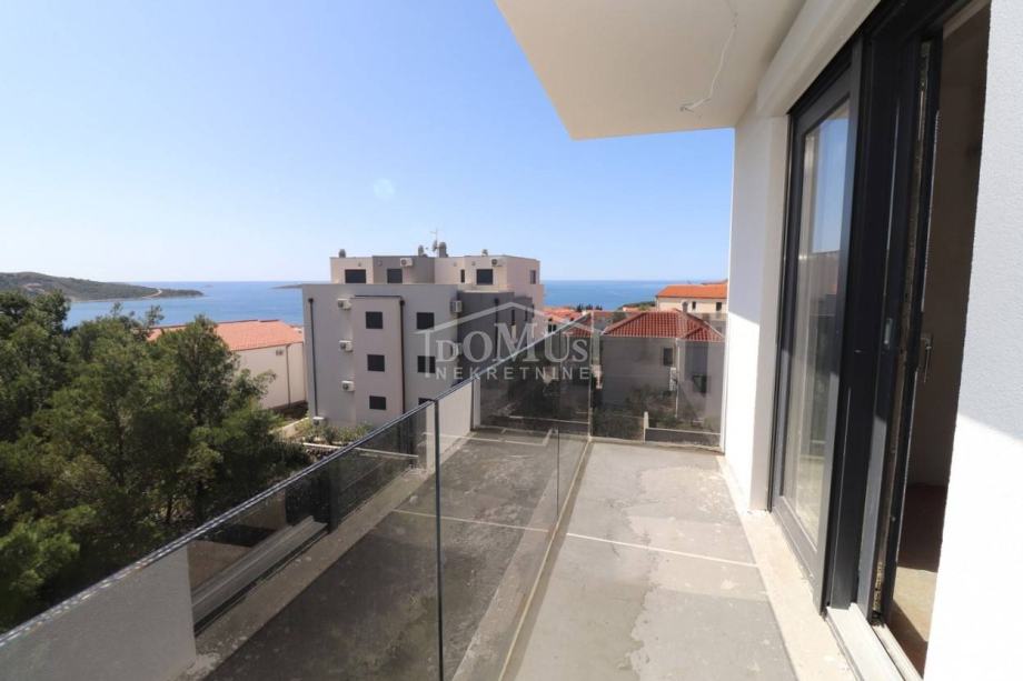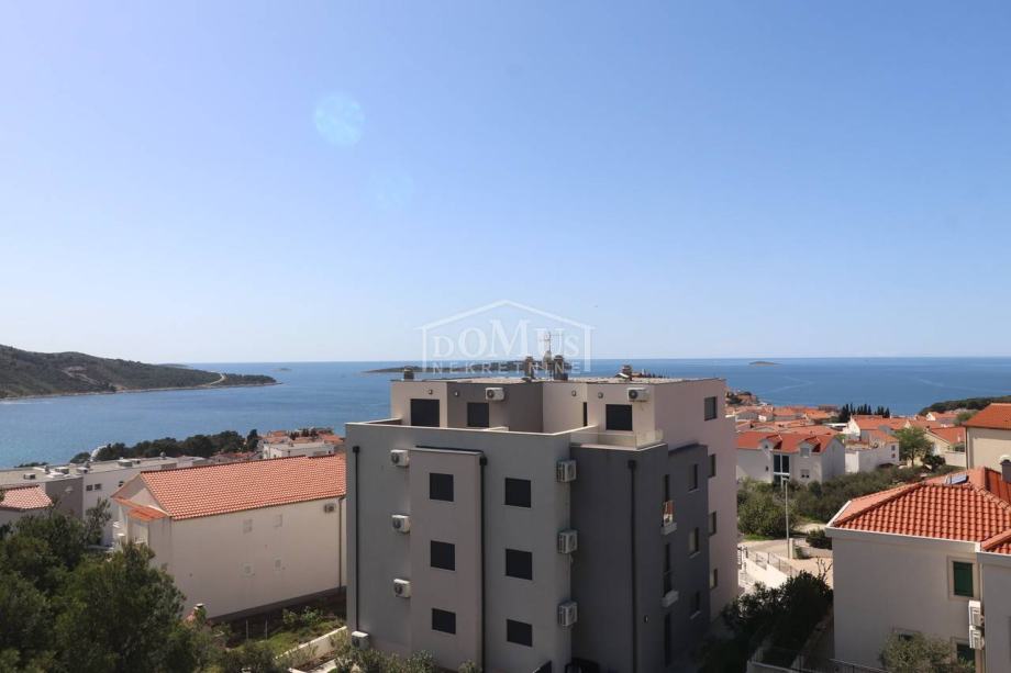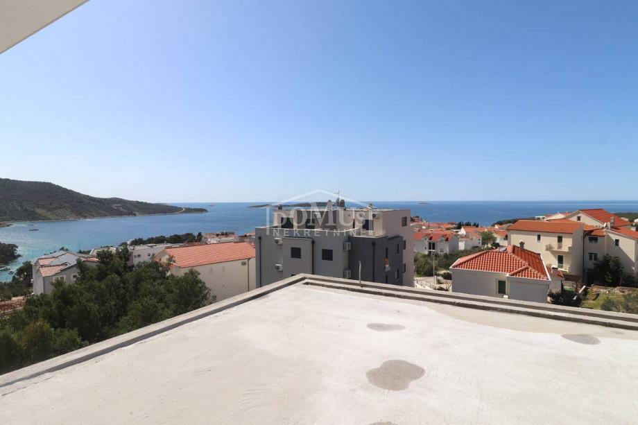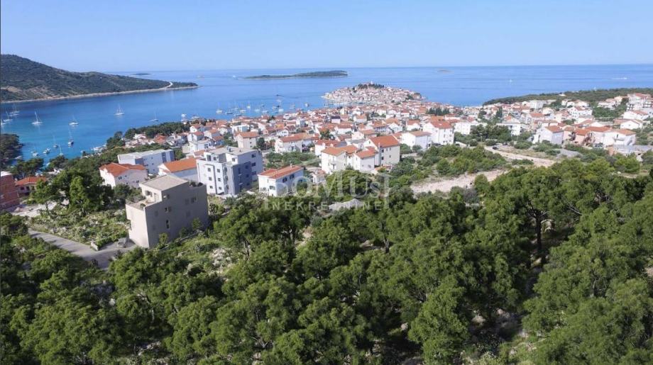 Primošten, novogradnja, višestambena zgrada sa 5 stambenih jedinica, na 4 etaže: prizemlje + 1. kat + 2. kat + potkrovlje. Zgrada je modernog izgleda, bit će opremljena s podnim grijanjem u kupaonici i dnevnim boravku, visoko kvalitetna keramika i sanitarije, klima uređaji za grijanje i hlađenje u svakoj sobi i dnevnom boravku, pvc stolarija sa komarnicima, el. podizači roleta, stiropor fasada 10 cm.