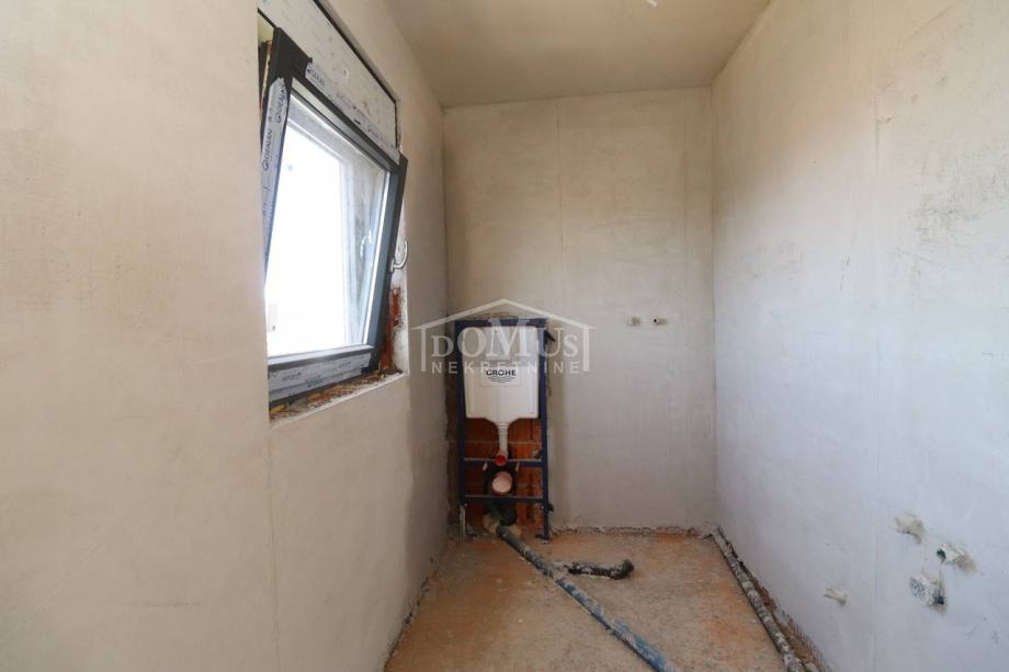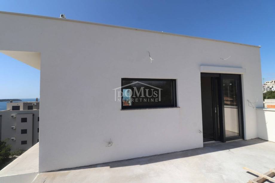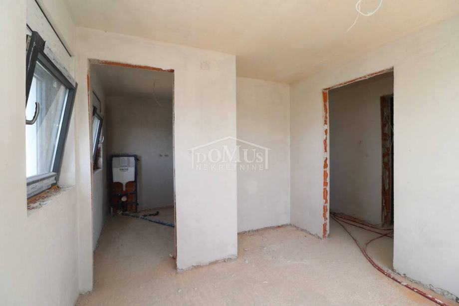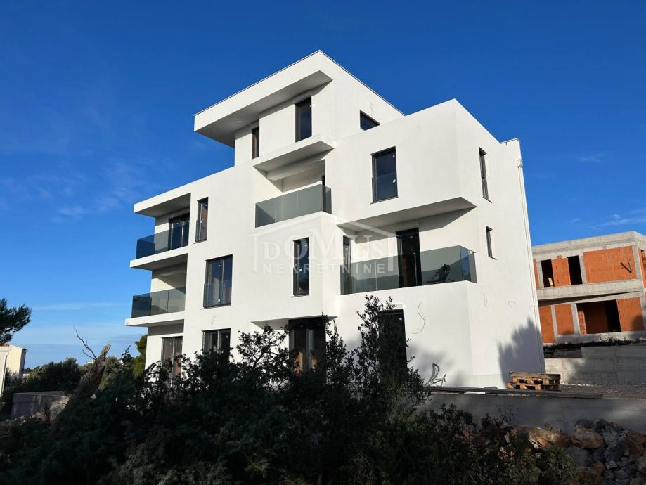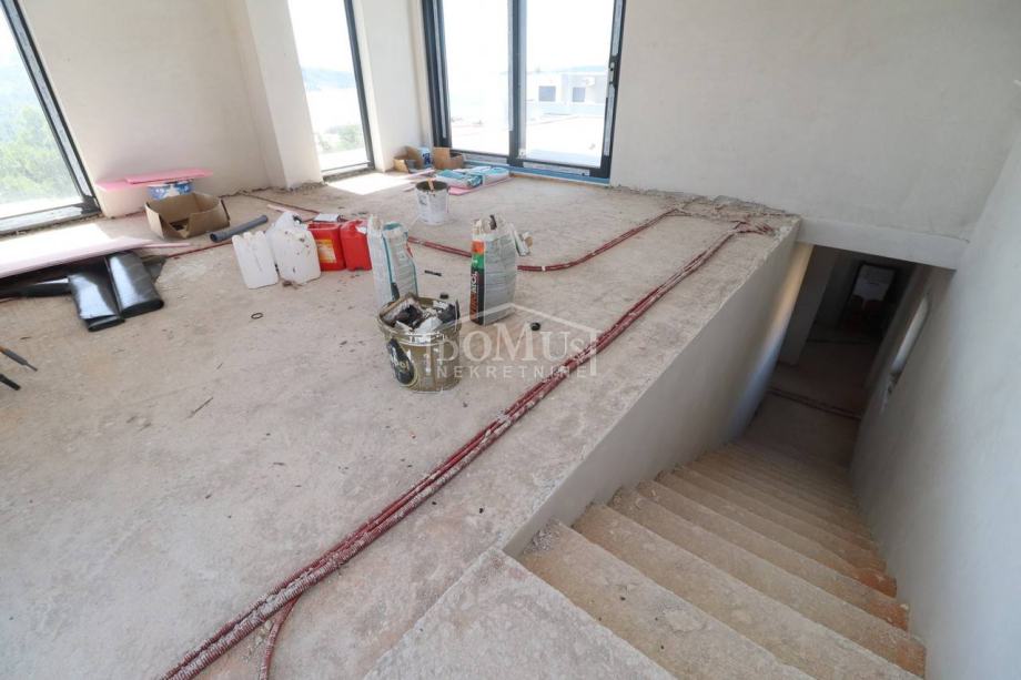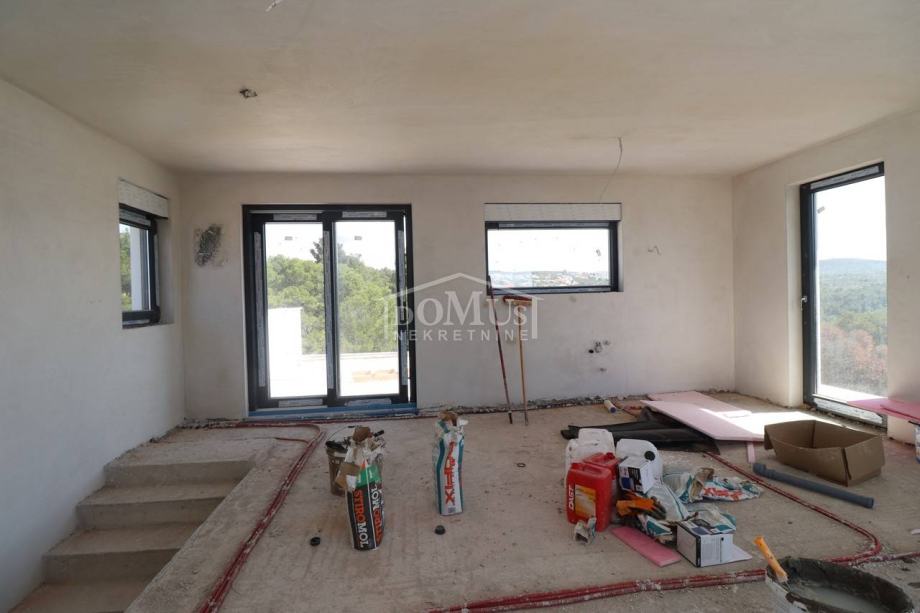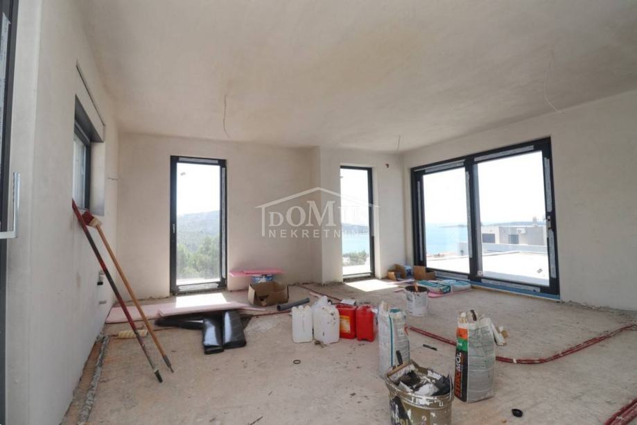 Primošten, novogradnja, višestambena zgrada sa 5 stambenih jedinica, na 4 etaže: prizemlje + 1. kat + 2. kat + potkrovlje. Zgrada je modernog izgleda, bit će opremljena s podnim grijanjem u kupaonici i dnevnim boravku, visoko kvalitetna keramika i sanitarije, klima uređaji za grijanje i hlađenje u svakoj sobi i dnevnom boravku, pvc stolarija sa komarnicima, el. podizači roleta, stiropor fasada 10 cm.