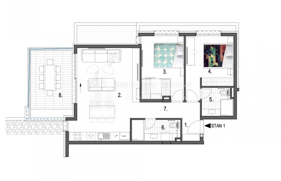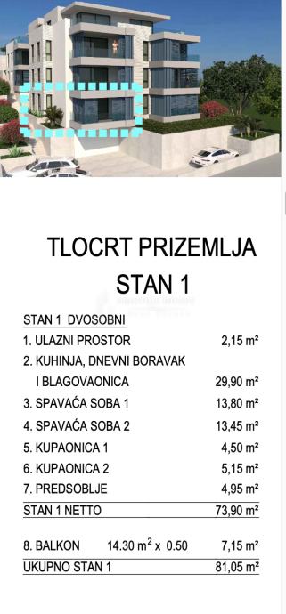 PRIMOŠTEN- S1- 2 soban stan - prizemlje- pogled na more (prodaja)