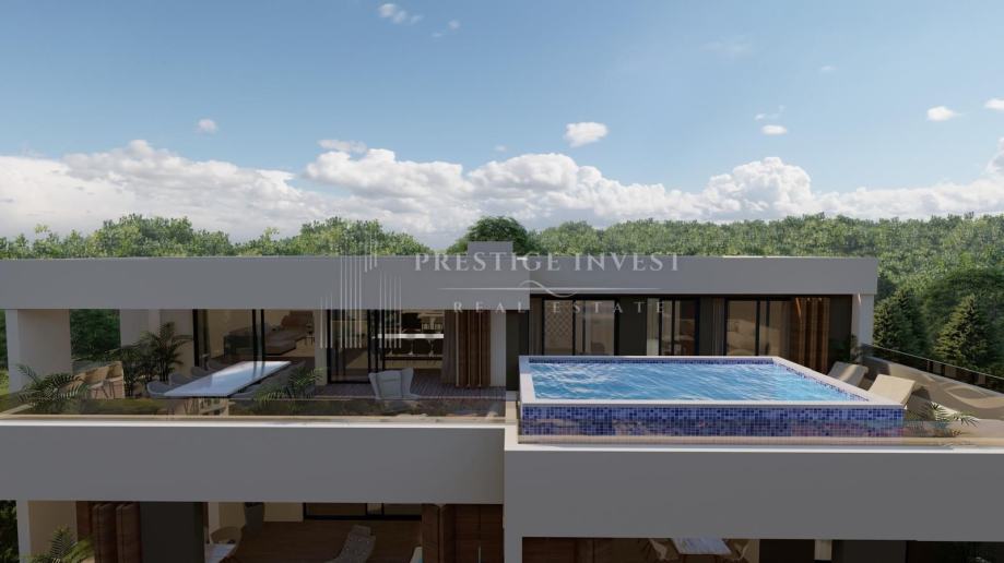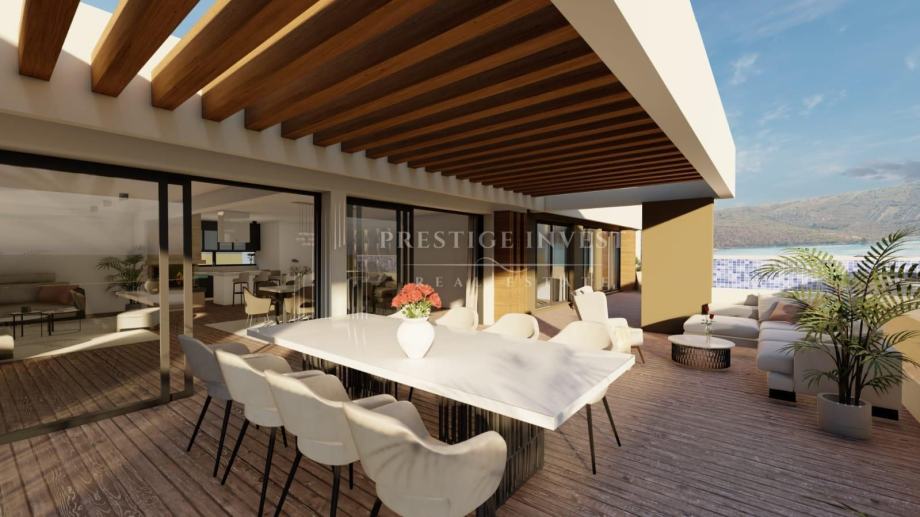 Ovaj prekrasan stan ima izlaz iz dnevnog boravka na prostranu terasu površine 74,23 m2 uz koji dolazi luksuzni jacuzzi i ogroman prostor za odmor koji pruža prekrasan panormamski pogled na hrvatske otoke.