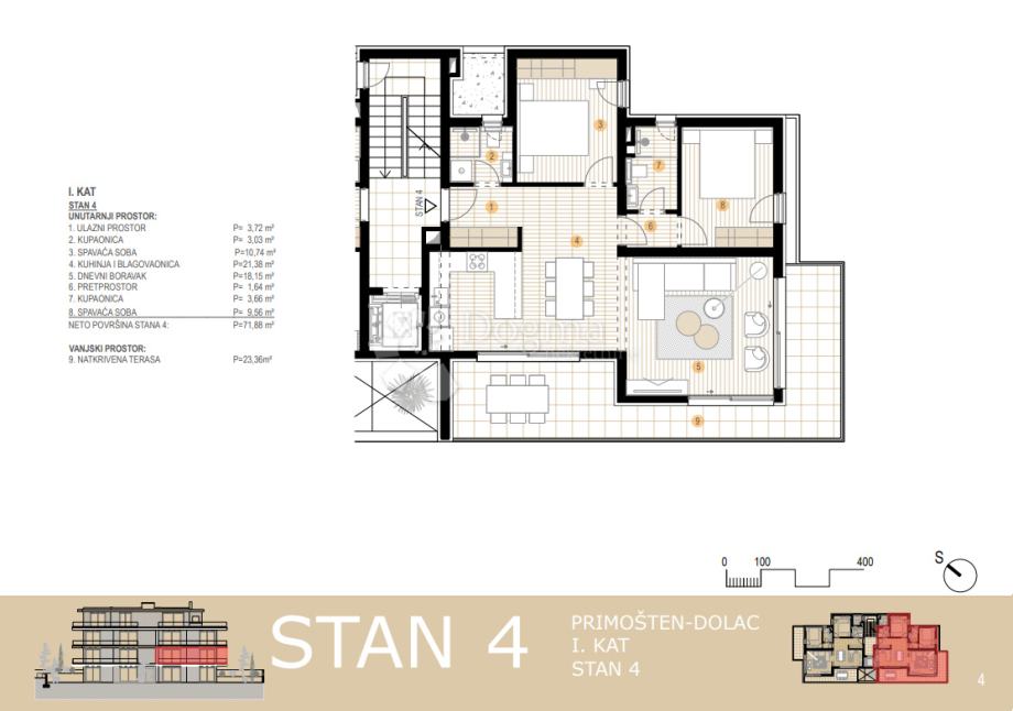 Na prodaju je moderan stan u vrhunskoj novogradnji na jedinstvenoj lokaciji u Dolcu pored čarobnog Primoštena. Zgrada ima ukupno samo 7 stanova, a radovi su započeli. Useljenje je planirano na jesen 2026.