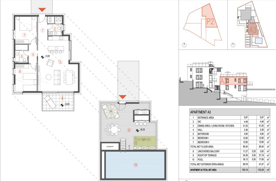 Primošten, prekrasan trosoban apartman NKP 140,42 m2 na atraktivnoj lokaciji, idealan za opuštajući odmor s pogledom na more! Smješten u mirnom okruženju, a istovremeno blizu svih važnih sadržaja.Apartman oznake P2 A3 se sastoji od ulaznog hodnika, potpuno opremljene kuhinje, prostranog...