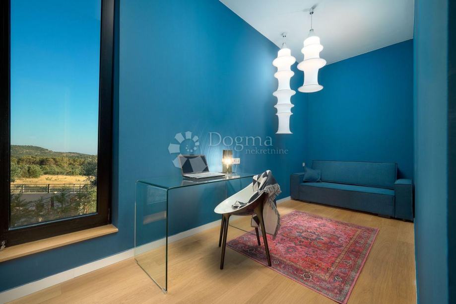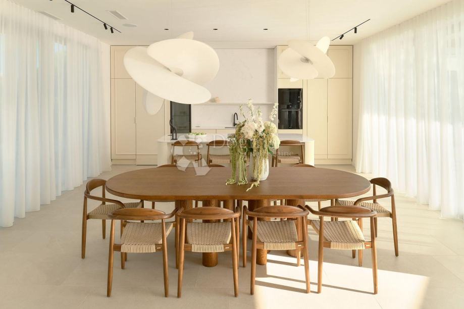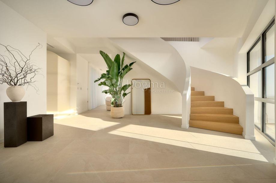 Središnji životni prostor vile čini elegantan open-space dnevni boravak, blagovaonica i moderna kuhinja vrhunskog dizajna. Velike staklene stijene omogućuju obilje prirodnog svjetla i stvaraju besprijekornu vezu s vanjskim prostorom.