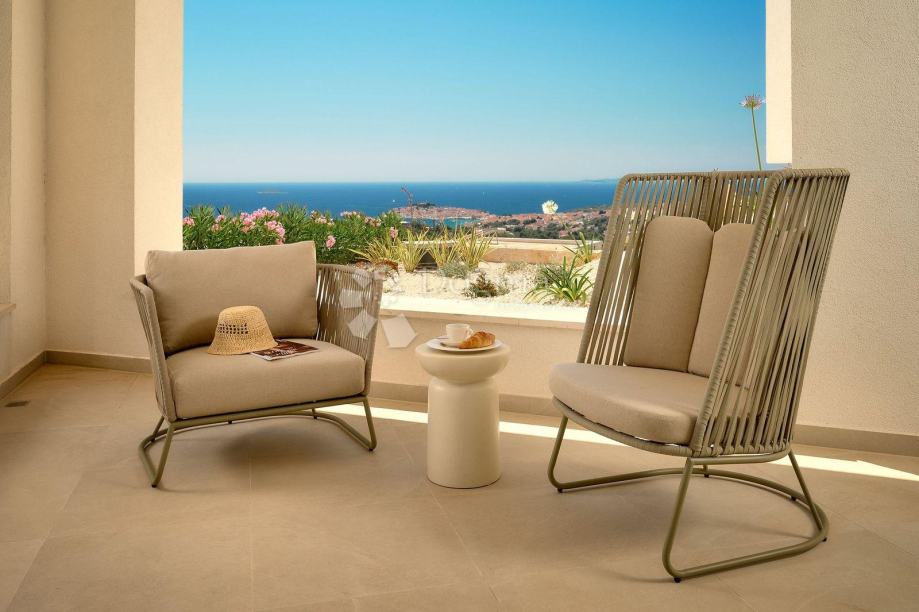 Na istočnoj strani nalazi se terasa s potpuno opremljenom ljetnom kuhinjom i roštiljem, dok zapadna strana nudi spektakularnu zonu za opuštanje s grijanim infinity bazenom i sunčalištem, uz očaravajući pogled na more.