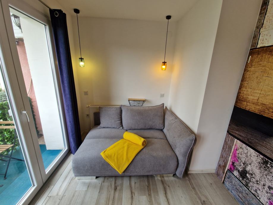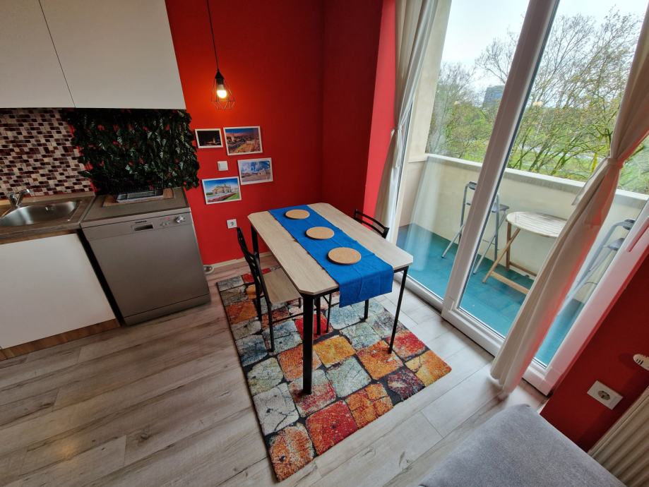 Iznajmljuje se namješten jednosobni stan površine 48m2 na odličnoj lokaciji u mirnoj obiteljskoj zgradi na Vrbiku (rozna zgrada istočno od 'raketa') bez lifta na četvrtom katu.