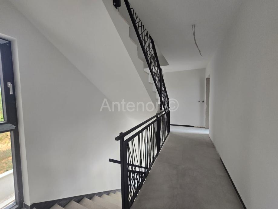 Apartman se sastoji od hodnika, kupaonice, kuhinje, dnevnog boravka, dvije spavaće sobe i natkrivene terase sveukupne tlocrtne površine 70,81 m2. Apartmanu pripada i nenatkrivena krovna terase od 72,44 m2. Ukupna tlocrtna površina stana je 143,25 m2. Stanu još pripadaju 2 parkirna mjesta, a useljiv će biti 12/2025.