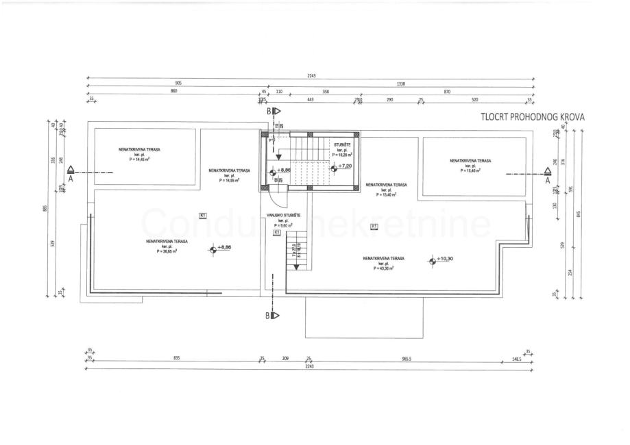 Oba apartmana se sastoje od kuhinje s blagovaonicom i dnevnim boravkom, natkrivene terase, dvije spavaće sobe od kojih jedna ima vlastitu kupaonicu te još jedne dodatne kupaonice. Svakom apartmanu pripadaju i prostrana krovna terasa s prekrasnim otvorenim pogledom na more te dva parkirna mjesta.
