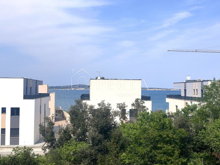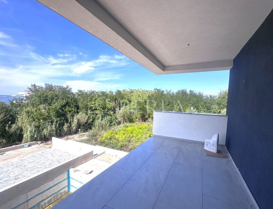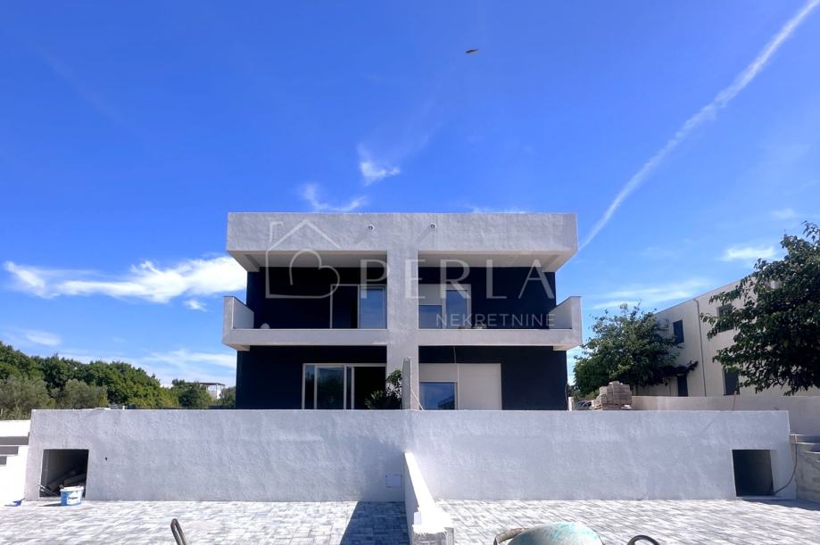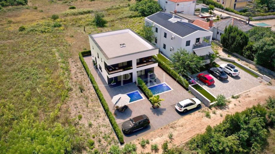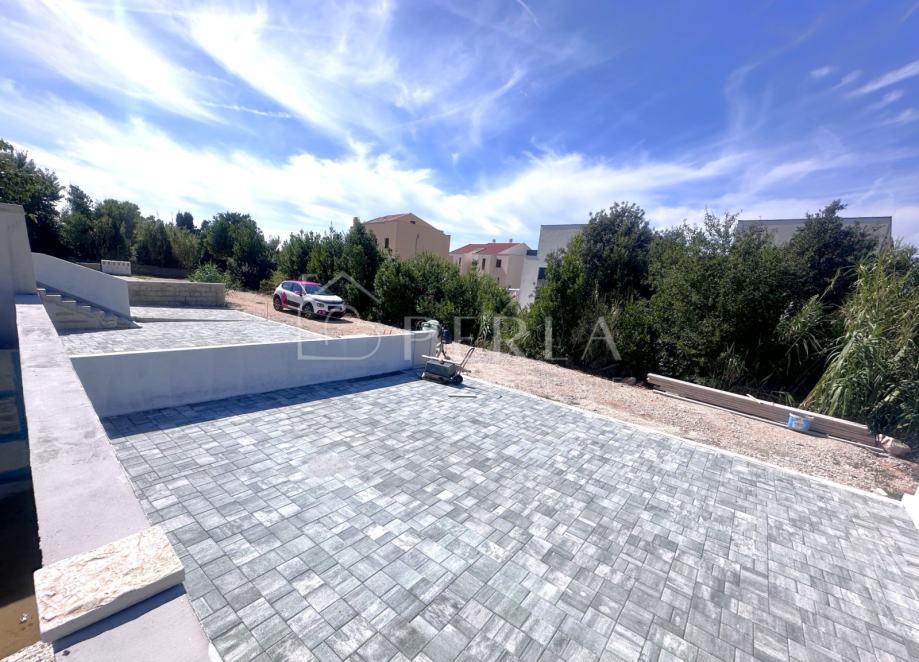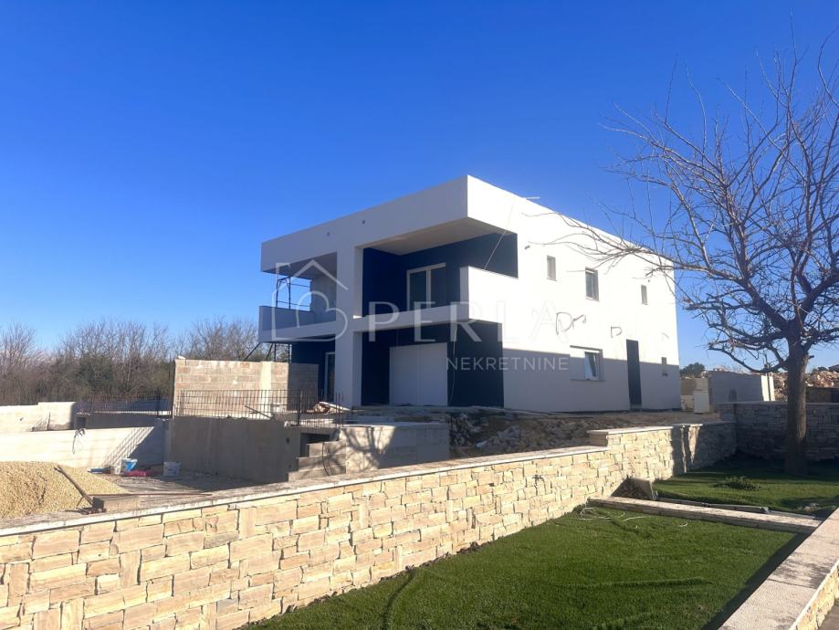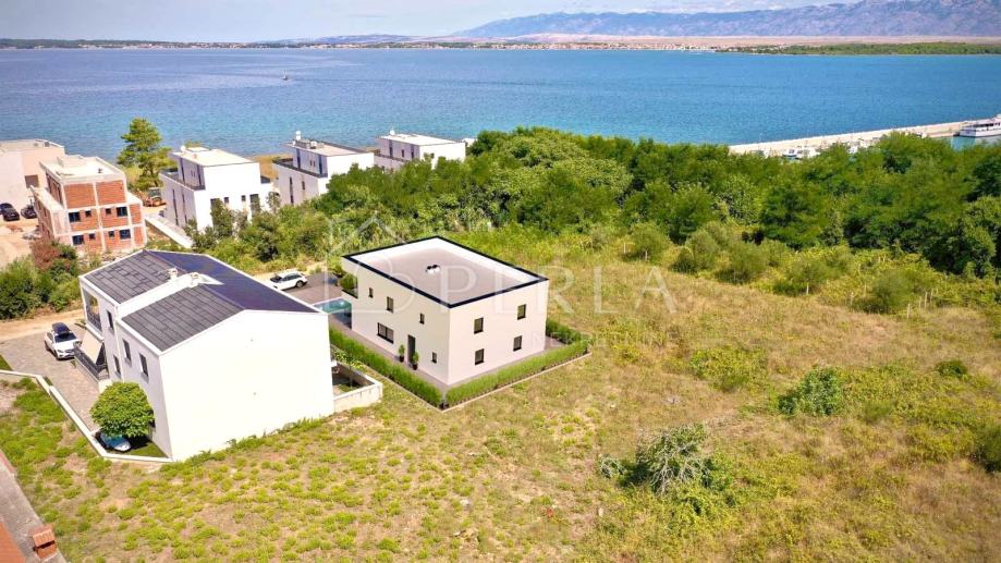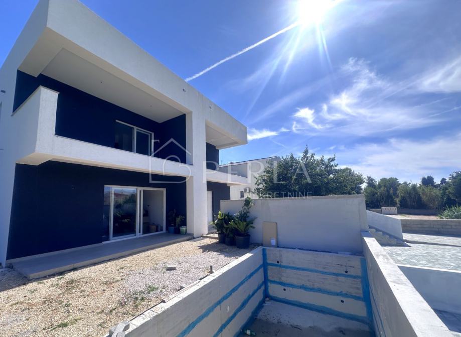 Prodaje se moderna duplex kuća u izgradnji s bazenom ukupne stambene površine 133 m2 na odličnoj lokaciji u mjestu Privlaka, s fantastičnim pogledom na more.