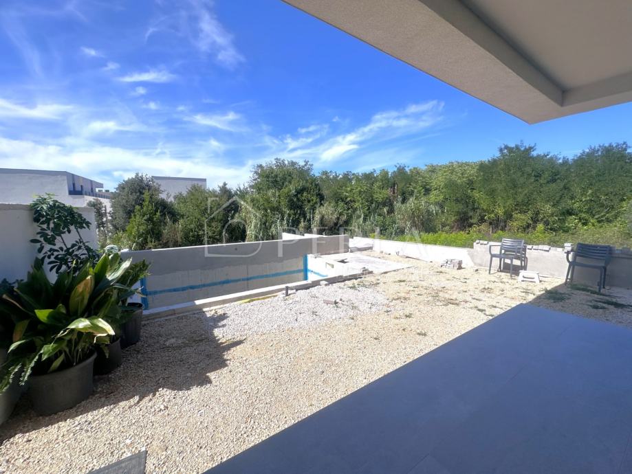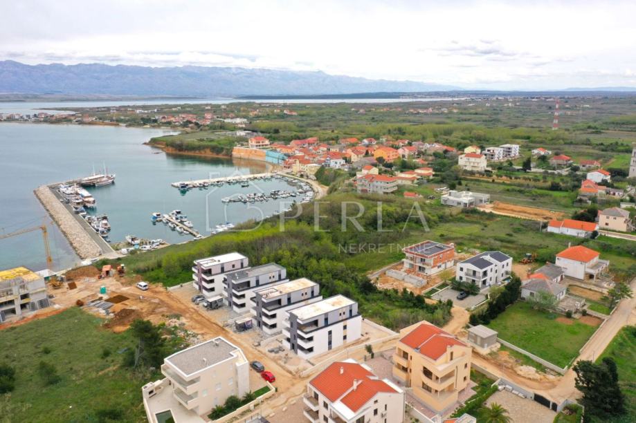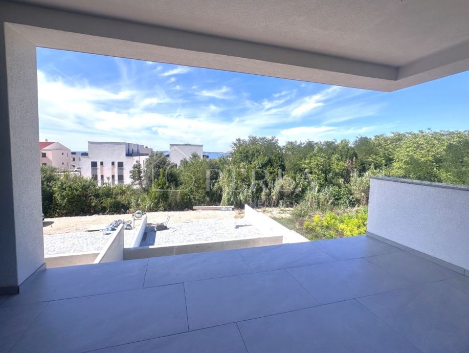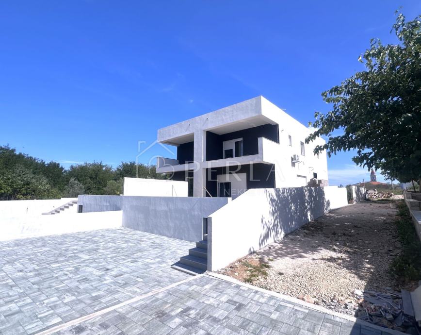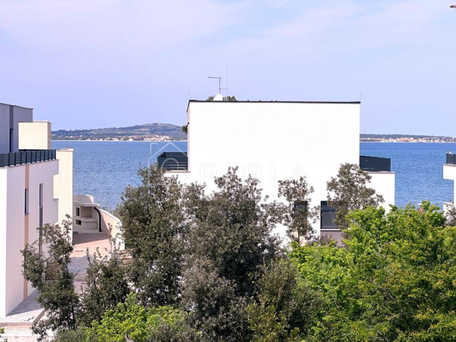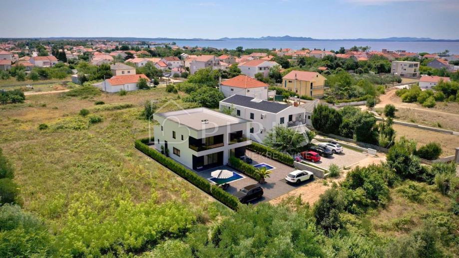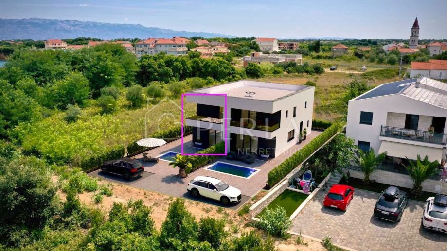 Prodaje se moderna duplex kuća u izgradnji s bazenom ukupne stambene površine 133 m2 na odličnoj lokaciji u mjestu Privlaka, s fantastičnim pogledom na more.