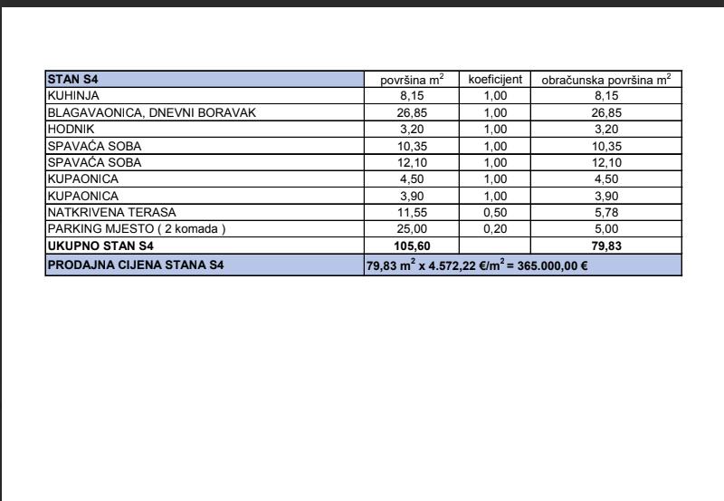 Prodaje se dvosoban apartman u Privlaci predio Mletak u novogradnji koja se sastoji od ukupno 6 stambenih jedinica. Na svakoj etaži su smještene po dvije stambene jedinice. Jako lijepa lokacija, 70 m od mora i plaže. Zgrada je upravo gotova i useljiva. Stan oznake S4 smješten je na 1. katu zgrade. Sastoji se od hodnika, kuhinje, blagavaone s dnevnim boravkom, dvije spavaće sobe, dvije kupaonice i natkrivene terase. Pripadaju mu dva parkirna mjesta. Stambena etaža S4 ima ukupno prema koeficijentima 79,83 m2. Apartmani imaju podno grijanje u svim prostorijama plus klima uređaj u svakoj prostoriji.