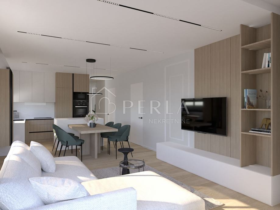 Ovaj moderan dvosobni stan od 77,49 m2 se nalazi u zgradi od 9 stambenih jedinica, smještenoj na mirnoj lokaciji, od mora i plaže udaljenoj svega 200 m.