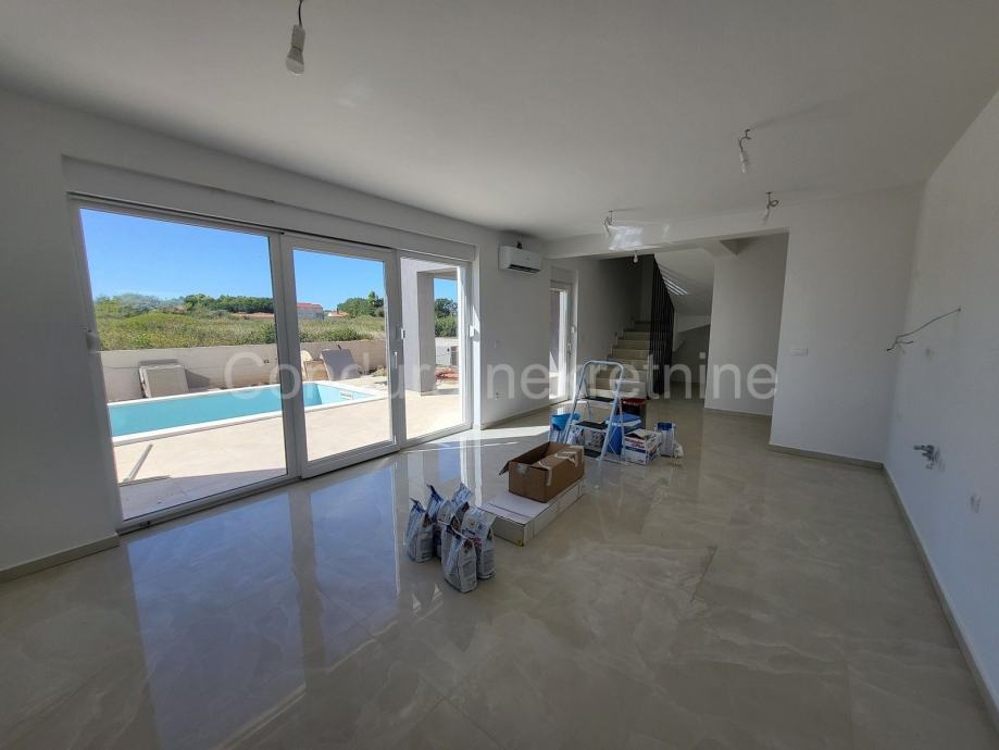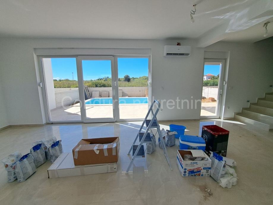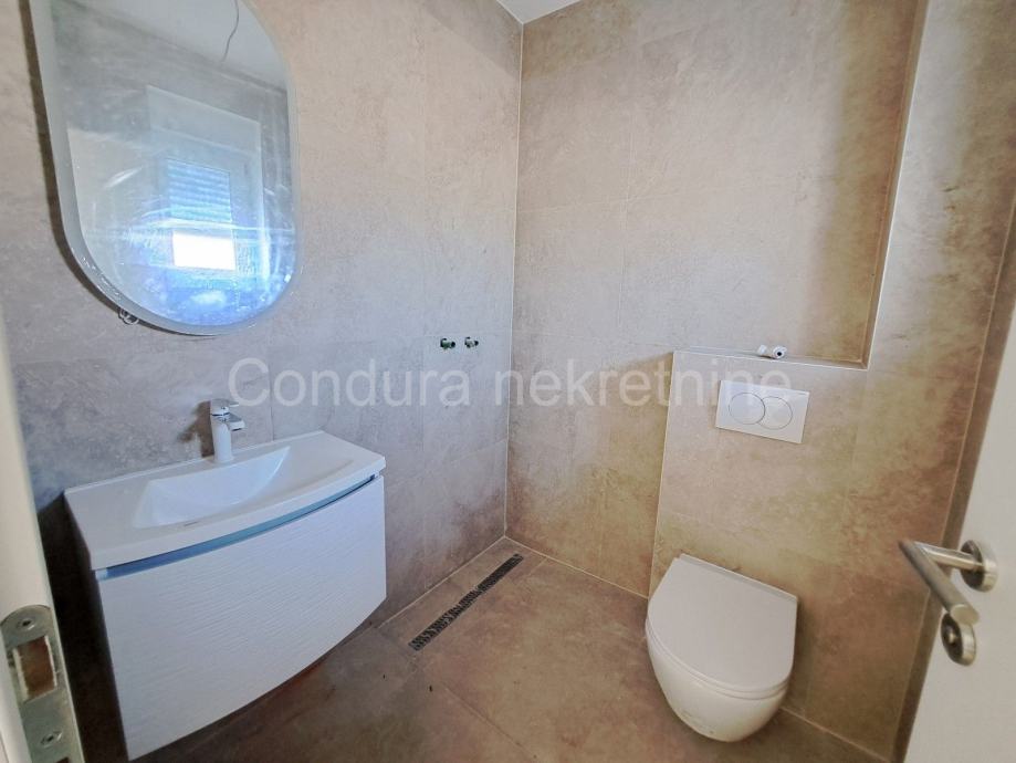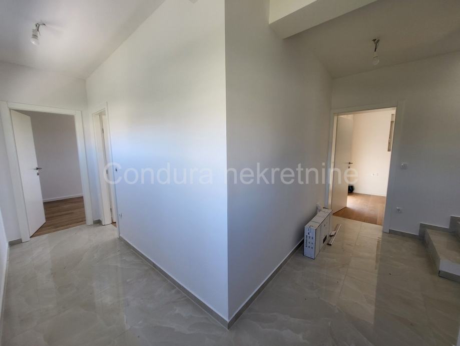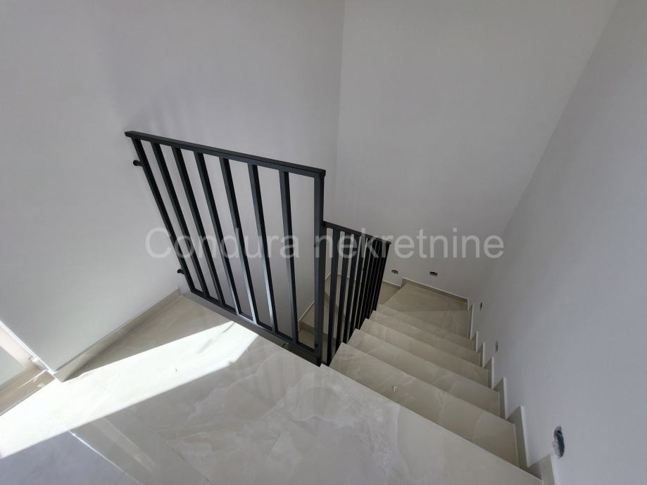 Apartman ima neto korisnu površinu ca 95 m2, a sastoji se od prizemlja u kojem se nalazi kupaonica, kuhinja i dnevni boravak s izlazom u pripadajući vrt u kojem je bazen površine ca 15 m2. Na katu se nalaze dvije spavaće sobe i još jedna kupaonica. Unutarnjim stubištem se izlazi na prostranu nenatkrivenu terasu s jacuzzijem i prekrasnim otvorenim pogledom na more i okolicu.