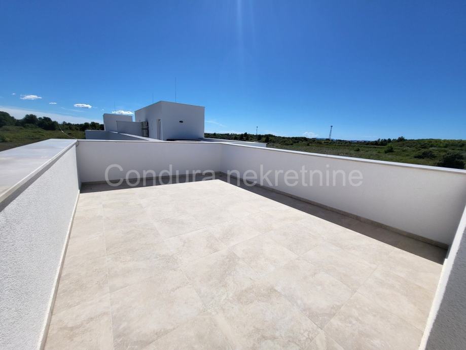 Prodaje se dvoetažni apartman s krovnom terasom na izvrsnoj lokaciji, u neposrednoj blizini mora. Nalazi se u stambenom objektu s ukupno pet stambenih jedinica.