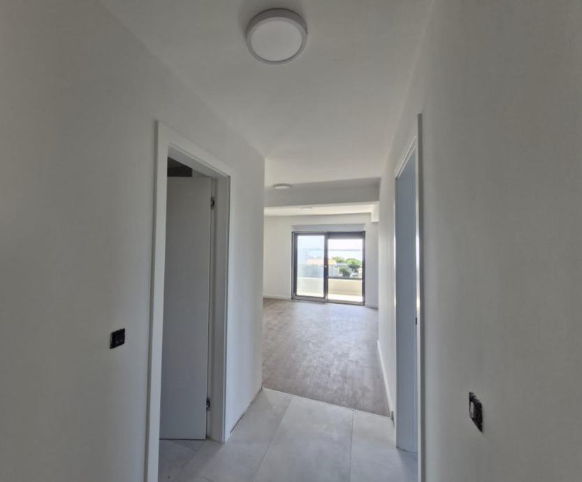 Privlaka, novogradnja, objekt sa 6 stambenih jedinica, 150 m od pješčane plaže. Na prodaju su dva stana na drugom katu zgrade sa krovnim terasama. Stan oznake S5; , kupaonica 5,40, kuhinja s blagavaonom i dnevnim boravkom 35,79 m2, spavaća soba 1 12,59 m2, spavaća soba 2 10,18 m2, natkrivena terasa 6,85 m2 po koef 0,5 2,3,43 m2, krovna terasa 72,44 m3, po koef. 0,25 18,11 m2, dva parkirna mjesta 25 m2 , po koef 0,2 5 m2, ukupno etažna jedinica stana S5 ima 90,50 m2. Tražena cijena je 330 000 eura. Stan S6, također na 2. katu zgrade sa pripadajućom krovnom terasom ; hodnik 1,76m2, kupaonica 3,61 m2, wc/vešeraj 2,10 m2, kuhinja, blagavaona i dnevni boravak 29,94 m2, spavaća soba 9,69 m2, spavaća soba 2 9,69 m2, natkrivena terasa 6,85 m2 po koef. 0,5 3,43 m2, krovna terasa od 67,06 m2 po koef 0,25 16,77 m2 ,te dva parkirna mjesta 25 m2 po koef. 0,2 5 m2 , ukupno stan S6 81,98 m2. Tražena cijena je 300 000eura. Visoka kvaliteta gradnje; aluminijska stolarija sa klizno podiznim staklenim stijenama na izlazu na balkon, komarnici, rolete, podno grijanje, klime u dnevnom dijelu i svakoj spavaćoj sobi, protuprovalna vrata... Zgrada se dovršava, useljiva je kroz mjesec dana. Više informacija na upit.