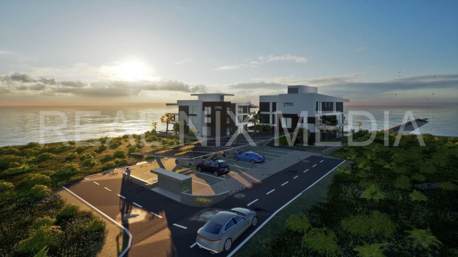 Projekt novogradnje na neponovljivoj lokaciji koja je s 3 strane okružena morem, nudi budućim stanarima stanovanje u 2 stambene zgrade s ukupno 18 stambenih jedinica. Projekt je koncipiran kako bi stanarima pružio, osim luksuzne gradnje, potpunu privatnost i komfor. Svaki stan ima pogled na more iz svih prostorija. Stanovima u prizemlju pripada vrt. Svakoj stambenoj jedinici pripadaju parkirna mjesta smještena uz zgradu.