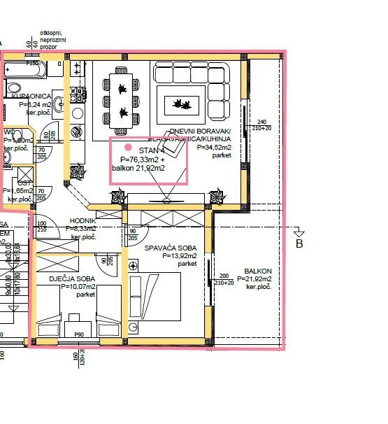 DNEVNI BORAVAK/ KUHINJA/ BLAGOVAONICA : 34,52 m2