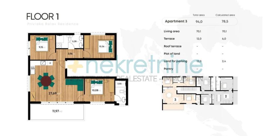 Parkirno mjesto: 12,00 m² (obračunski: 2,40 m²)