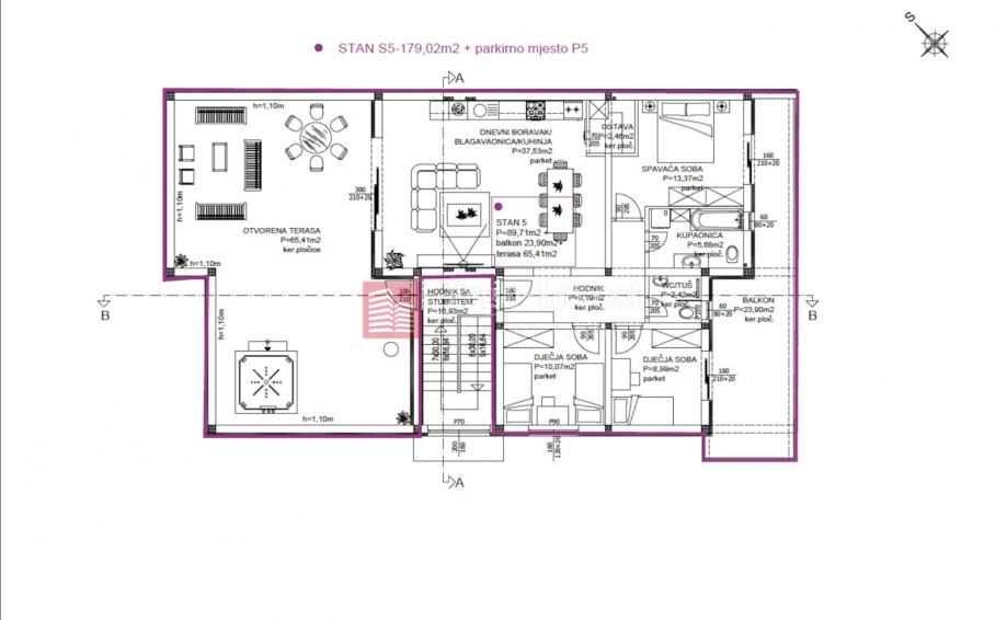 Sastoji se od ulaznog hodnika, kupaonice, balkona, tri spavaće sobe od kojih je jedna master spavaća soba sa vlastitom kupaonicom, ostave i dnevnog boravka/kuhinje/blagovaonice - otvorenog tipa sa izlazom na otvorenu prostranu terasu površine 65,41 m2.