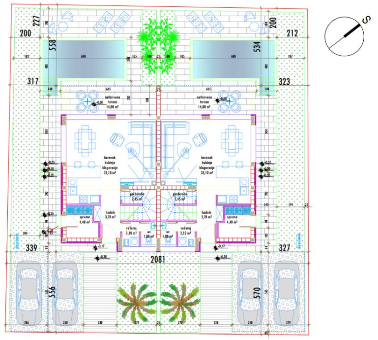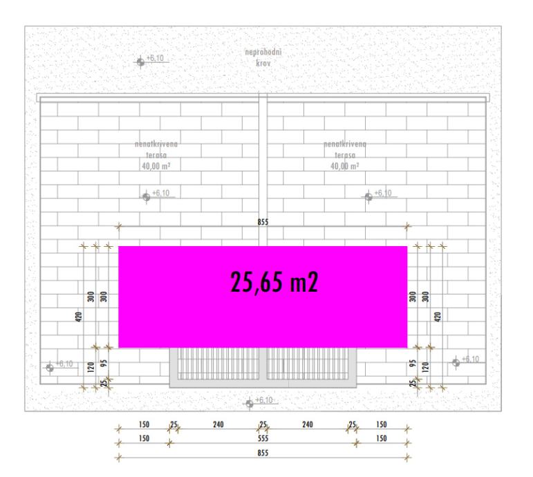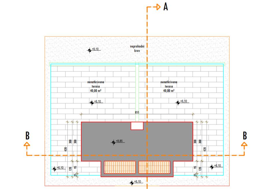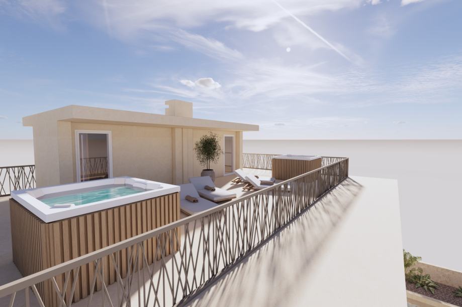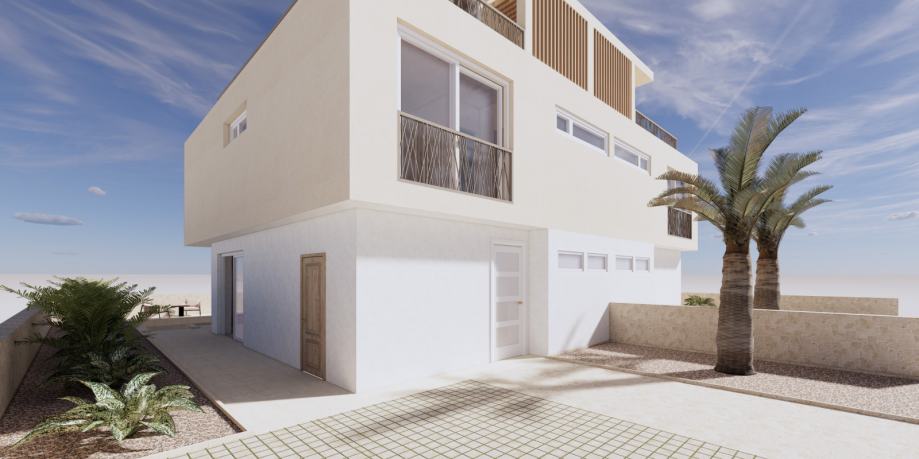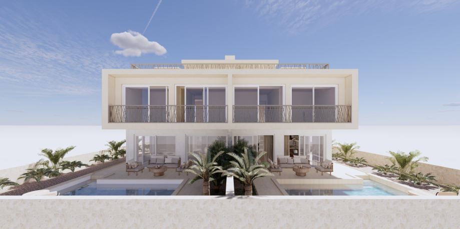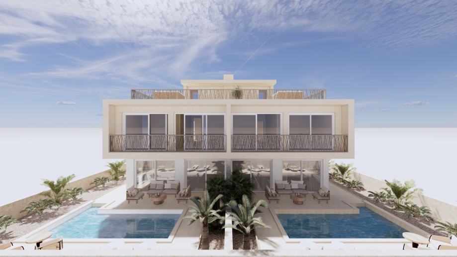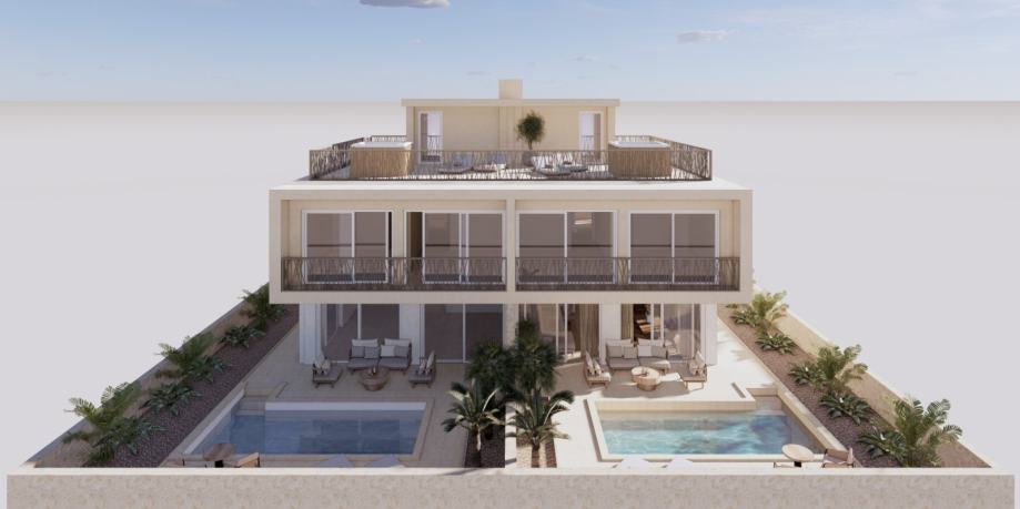 Objekt je koncipiran kao duplex vila s dvije zasebne stambene jedinice, od kojih svaka obuhvaća dvije etaže i impresivnu krovnu terasu s panoramskim pogledom na more i otoke.