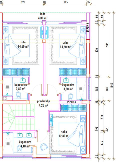 Kat: tri prostrane spavaće sobe, svaka sa svojom elegantnom kupaonicom.