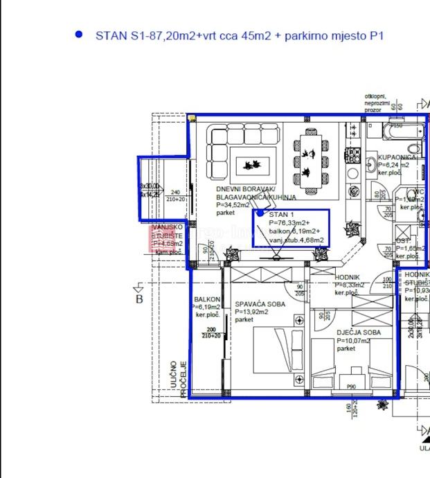 UKUPNO: 87,20 m2 + vrt cca. 45 m2.
