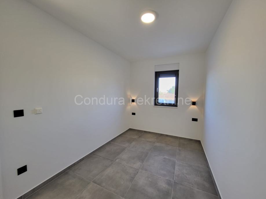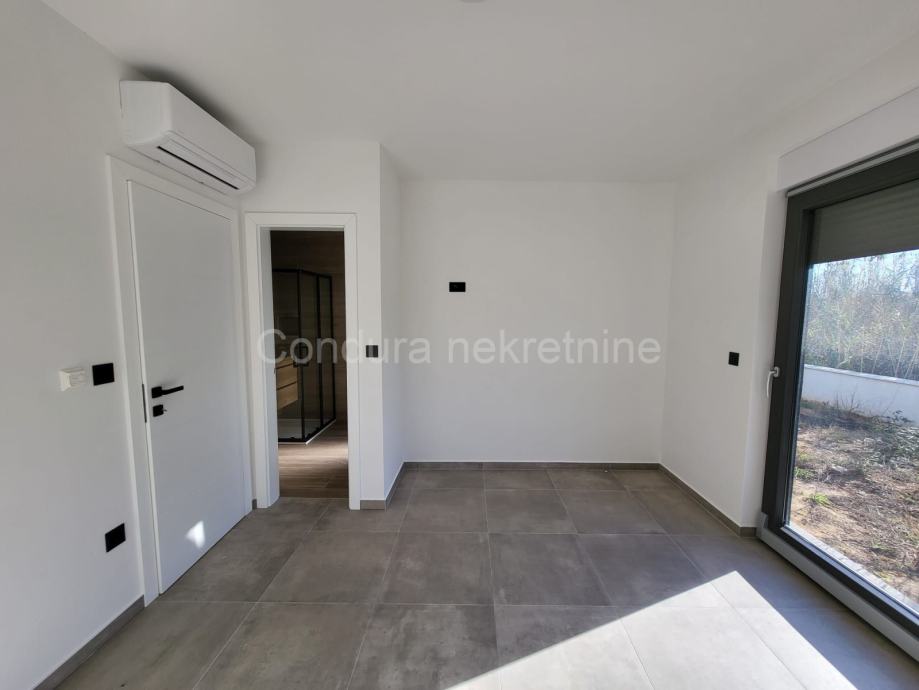 Oba apartmana se sastoje od kuhinje s blagovaonicom i dnevnim boravkom, natkrivene terase, dvije spavaće sobe od kojih jedna ima vlastitu kupaonicu te još jedne dodatne kupaonice. Svakom apartmanu pripadaju dva parkirna mjesta i dio vrta.