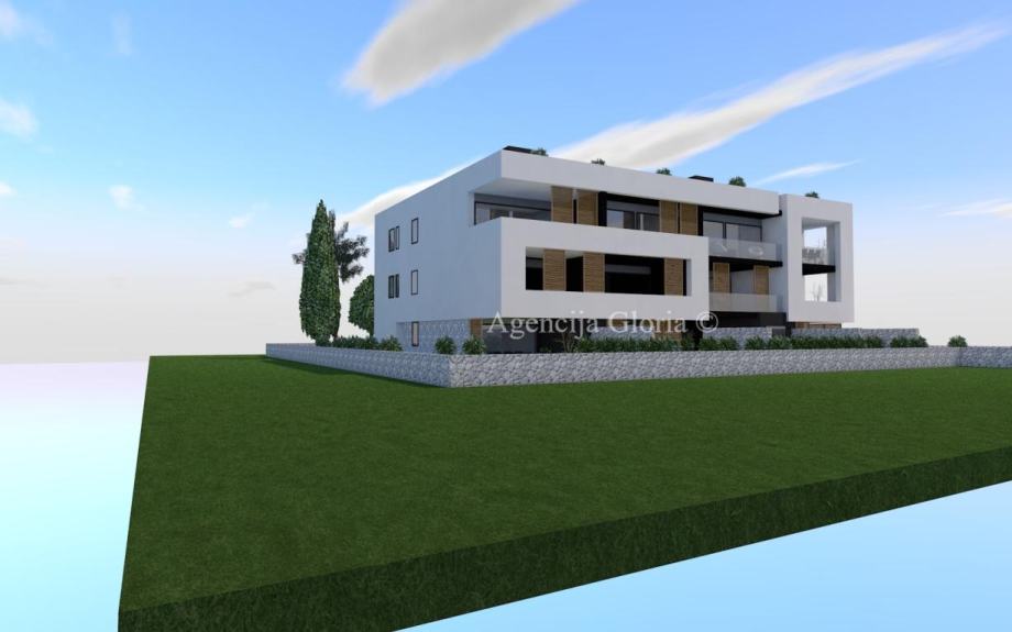Privlaka (Mletak)-novogradnja! Prodaju se luksuzni i modreno uređeni apartmani u mirnom dijelu mjesta Privlaka ( Mletak) kod Zadra u novogradnji 150m do mora. Smješteni su u stambenoj zgradi sa deset stambenih jedinica koja se sastoji od tri etaže: prizemlje, prvi i drugi kat. Svakom apartmanu pripada vanjsko parkirno mjesto, apartmanima u prizemlju pripada dio vrta dok apartmanima na drugom katu dio krovne terase. Proces izgradnje karakterizira upotreba visokokvalitetnih materijala koji kupcima/korisnicima pružaju maksimalnu udobnost i privatnost. U apartmane se ugrađuju vrhunski materijali: visokokvalitetna stolarija, visokokvalitetna keramika i parketi, podno grijanje, klimatizacija u svim prostorijama, toplinska fasada. Planirani rok završetka gradnje je krajem 2024 godine. Kupac ne plaća porez na promet nekretnina! Prodaje se apartman oznake S6-prvi kat: Apartman prodajne površine 107,13 m2 smješten na prvom katu stambene zgrade. Sastoji se od: hodnika površine 6,30m2, kuhinje+blagovaonice+dnevnog boravka površine 39,06m2, kupaonice površine površine 5,61m2, kupaonice povšine 2,97m2, garderoba površine 2,32m2, spavaće sobe površine 11,10m2, spavaće sobe površine 11,10m2, spavaća soba površine 10,92 m2 lođa površine 15,25m2. Pripada mu parkirno mjesto površine 12,5m2.