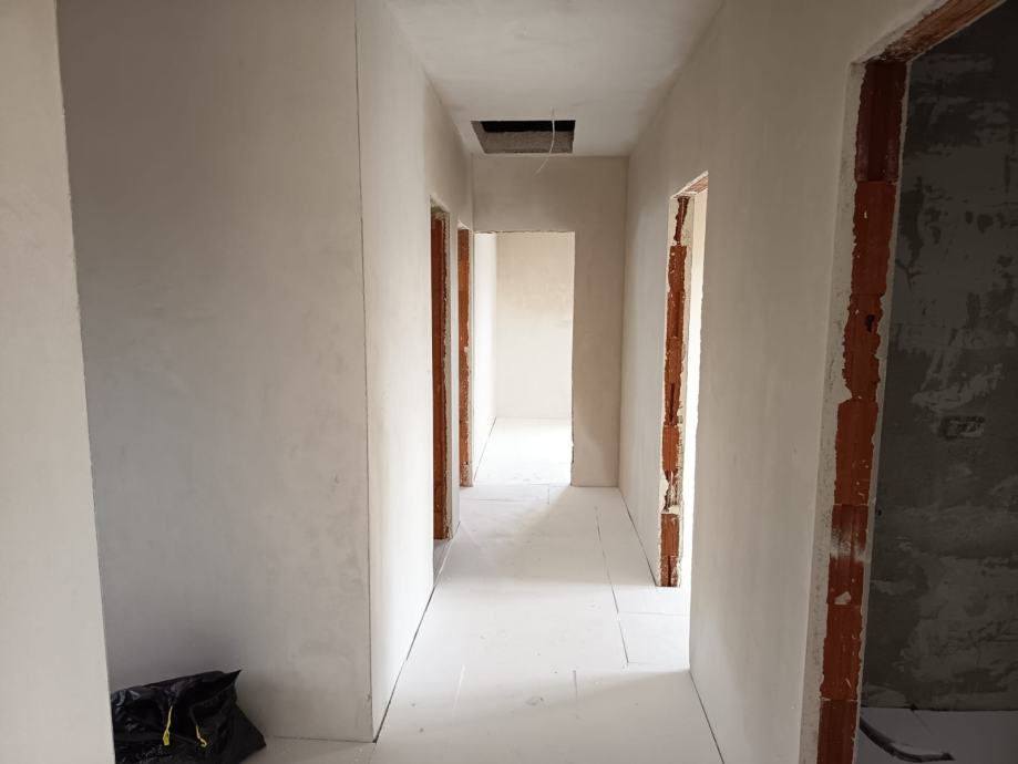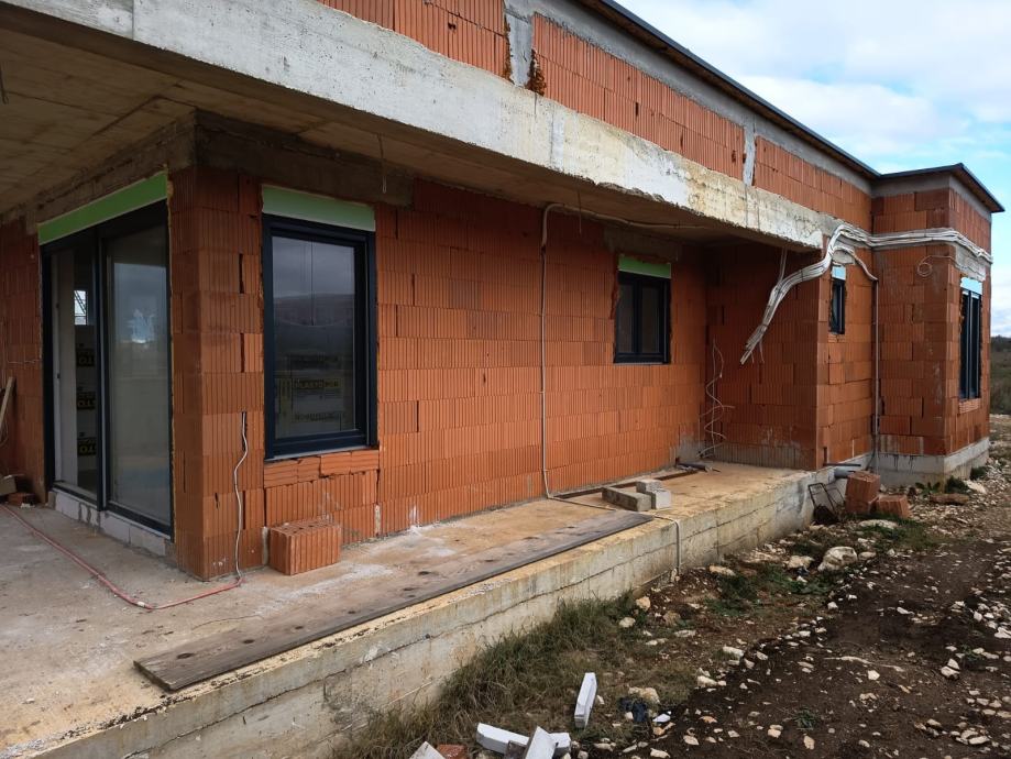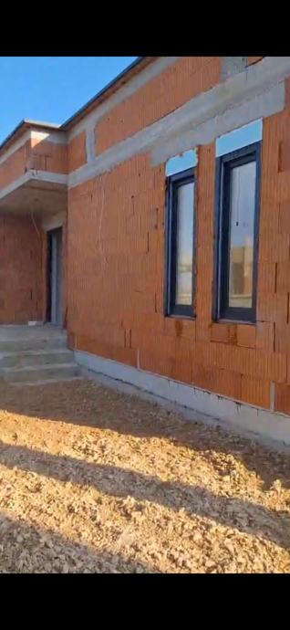 Kuća je izgradena stavljen krov i PVC antracit stolarija. Potrebno napraviti završne radove, podovi keramika laminat ili vinil i fasada.