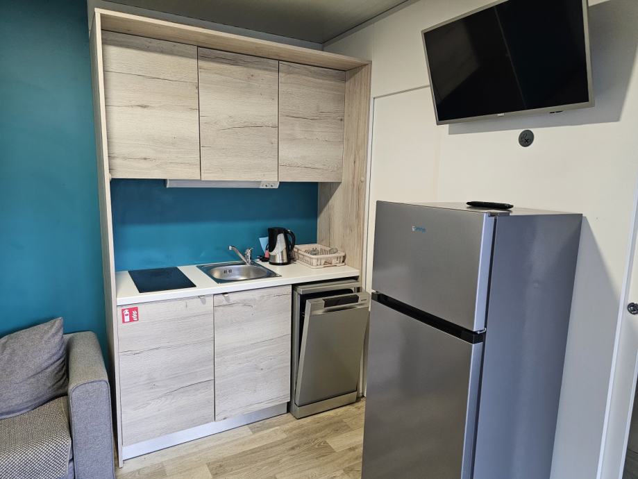 1 čajna kuhinja s perilicom posuđa, veliki hladnjak s odjeljkom za zamrzavanje