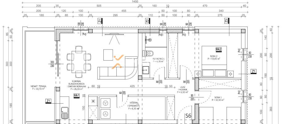 PVC windows with triple glazing provide excellent thermal and sound insulation. Electric shutters are installed on glass walls, while standard shutters and mosquito nets are fitted on the remaining windows. The entrance door is burglar-resistant and fire-resistant, and the roof is new, flat, and concrete. Floor coverings consist of tiles and laminate flooring, emphasizing the modern interior style.LocationPrivlaka is a small tourist place located only 15-minute drive from the city of Zadar, situated on a sandy peninsula between the royal town of Nin and the island of Vir. The clear blue sea and long, shallow sandy bays are ideal to relax completely. The place offers all the necessary content for pleasant life: shops, restaurants, post office, infirmary. Lovers of sports, recreation who want to try sailing or surfing will find their own piece of paradise in the nearby places. All you need for a peaceful and relaxing family holiday in the Mediterranean style you can find here.Additional infoIf you have found this property elsewhere advertised at a lower price, that same price is valid with us!https://www.emporia-realestate.com/property/apartment-a1581-privlaka/