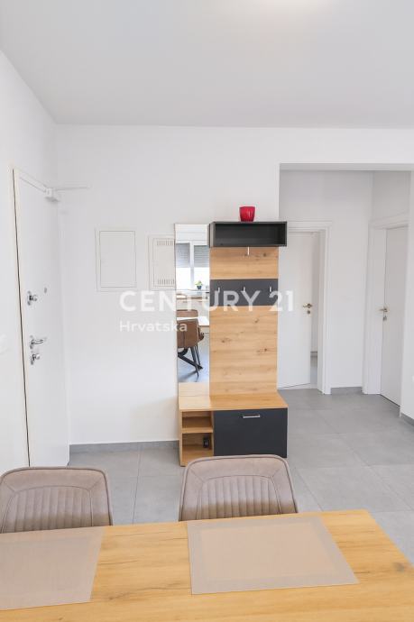 For sale is a two-bedroom apartment in Privlaka near Zadar, with an area of 57m2. It is located on the first floor, south-facing with a sea view. The distance from the sea is 100m. The apartment is sold fully furnished.